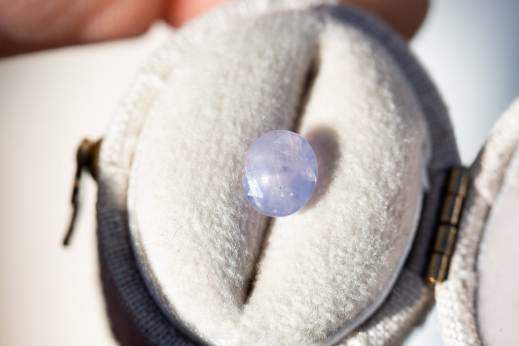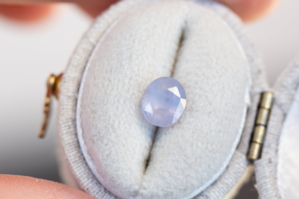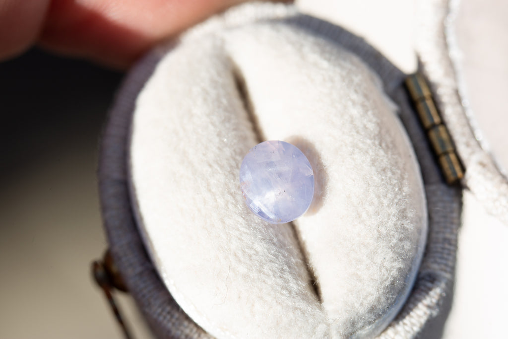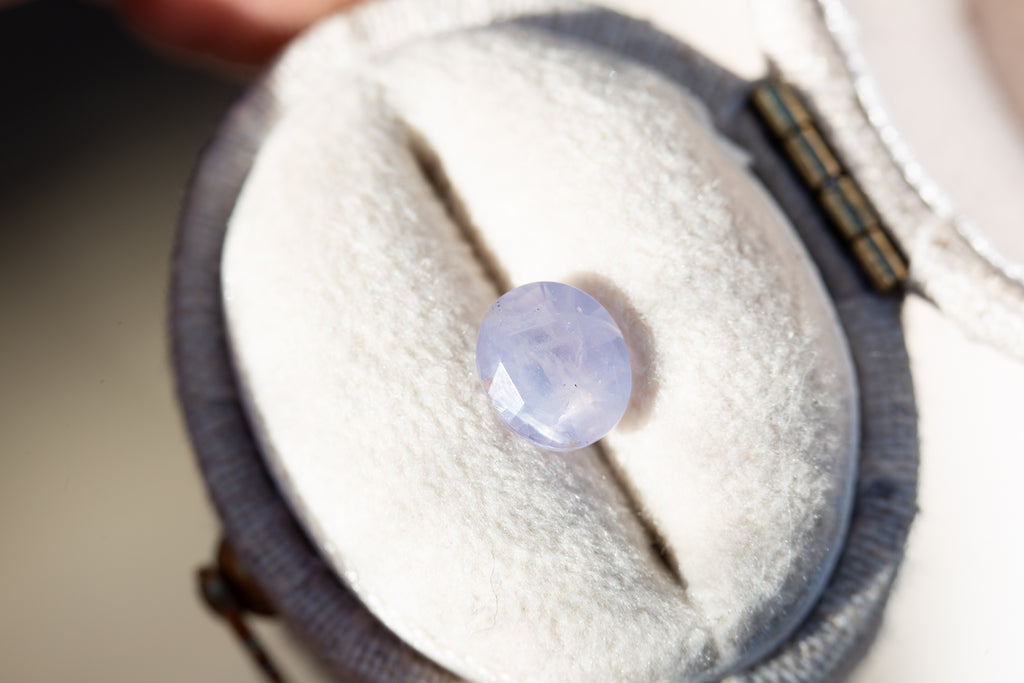 This gorgeous oval sapphire is such a stunning stone! It has the loveliest opalescence and such pretty light pink coloring - just an absolute beauty!