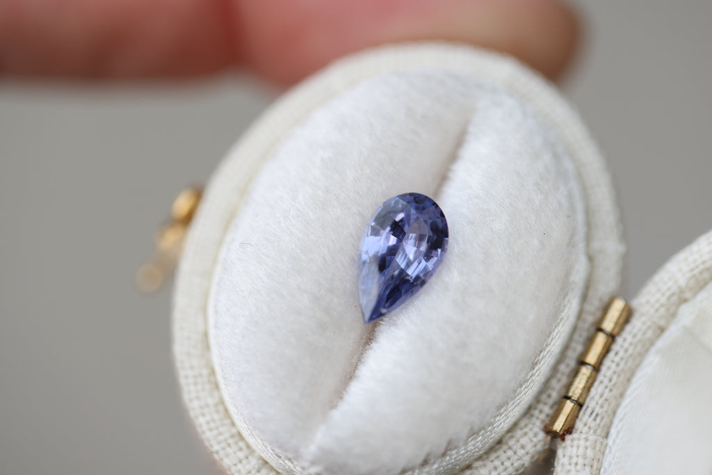 This absolutely gorgeous medium purple pear sapphire has the prettiest coloring and is just such a beauty!