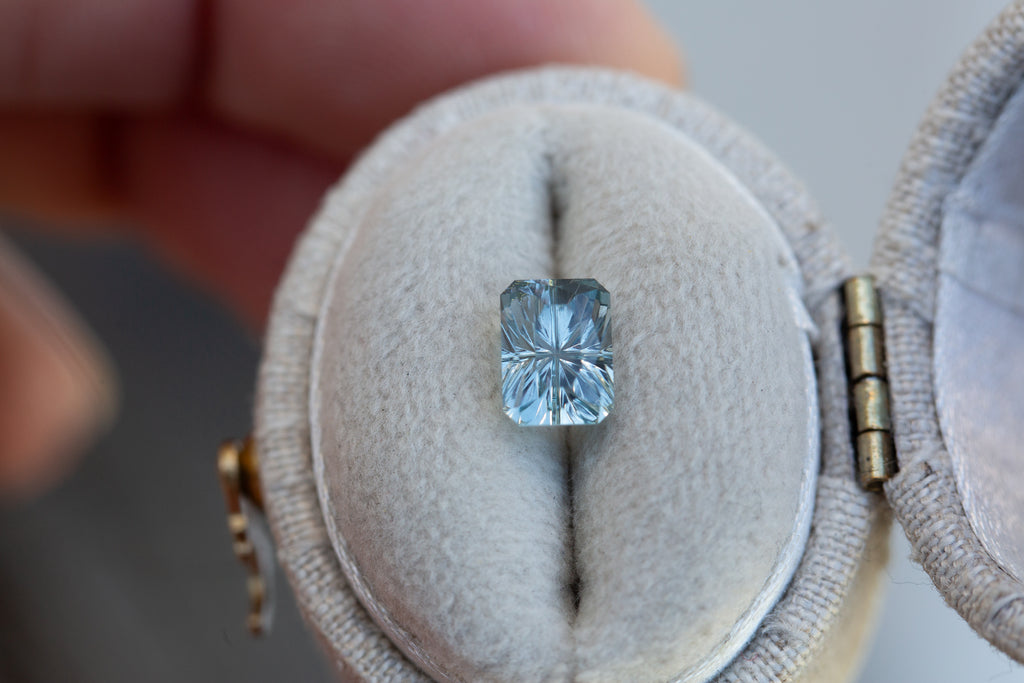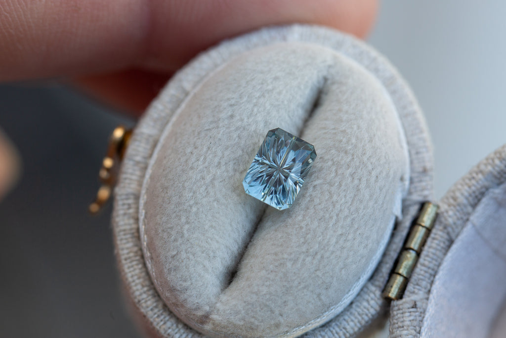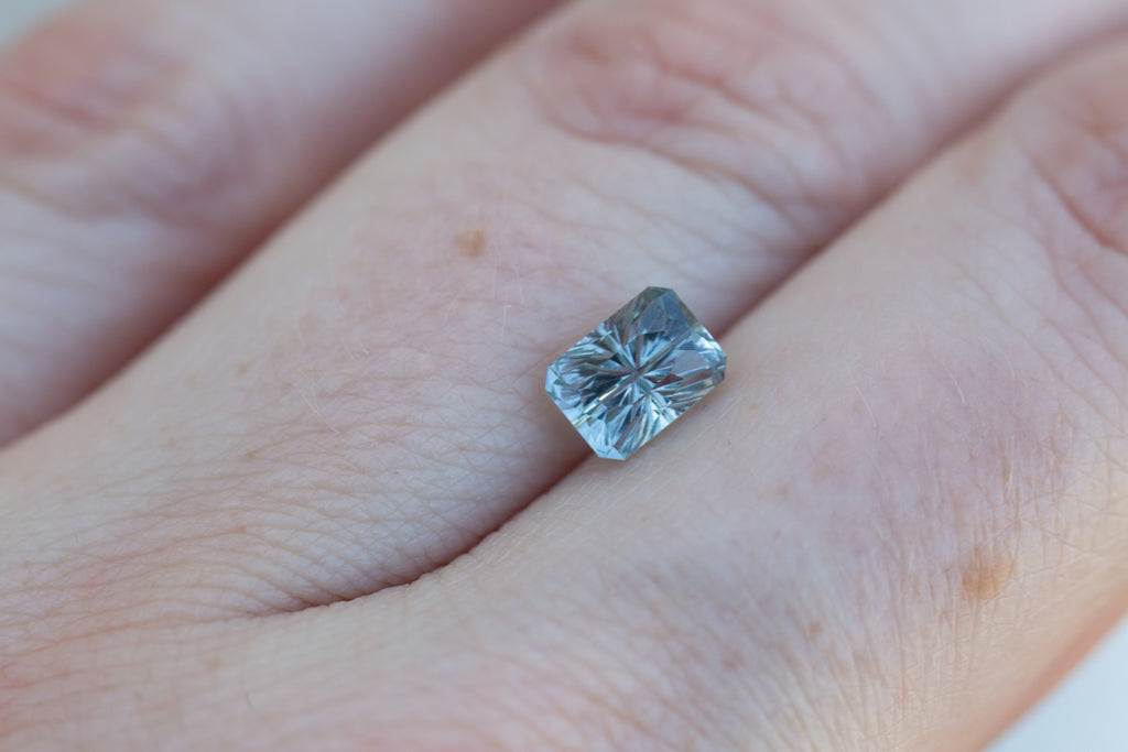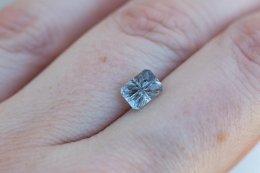 1.53ct rectangle silver/lighter blue sapphire - Starbrite cut by John Dyer