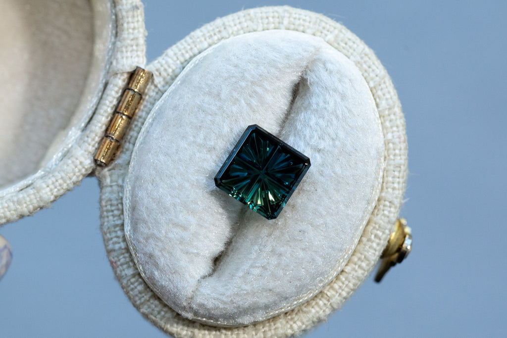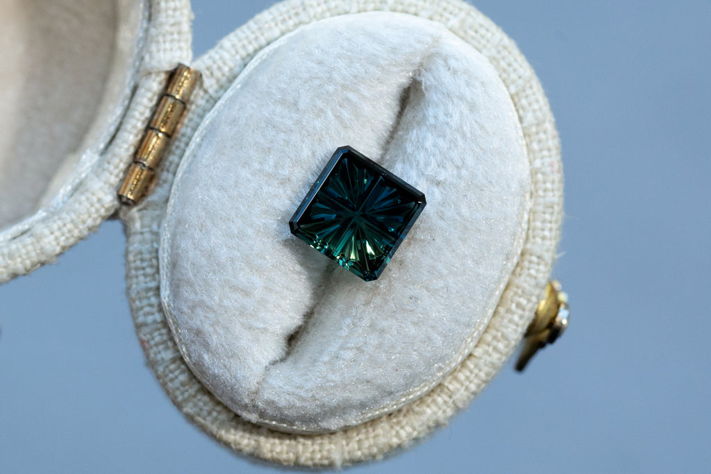 1.54ct Square Deep Teal Green Sapphire- Starbrite Cut by John Dyer