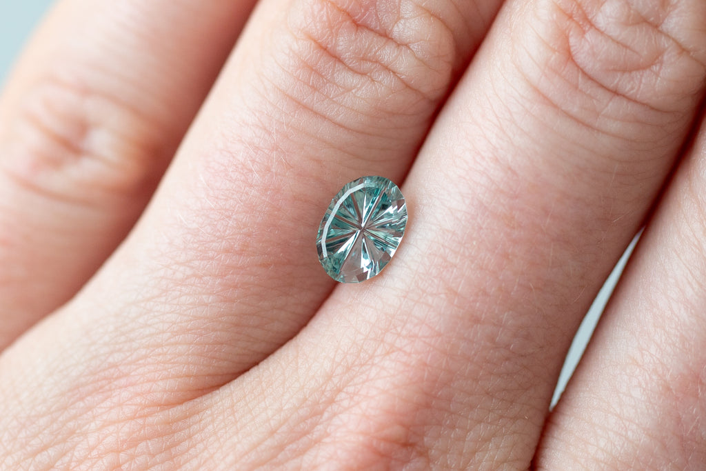 1.56ct Light Blue Green Sapphire, Starbrite cut by John Dyer