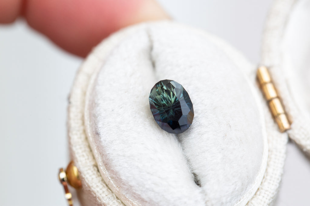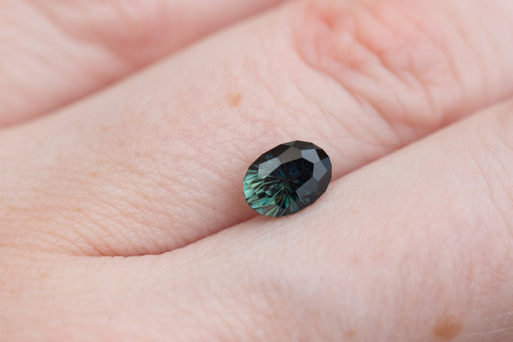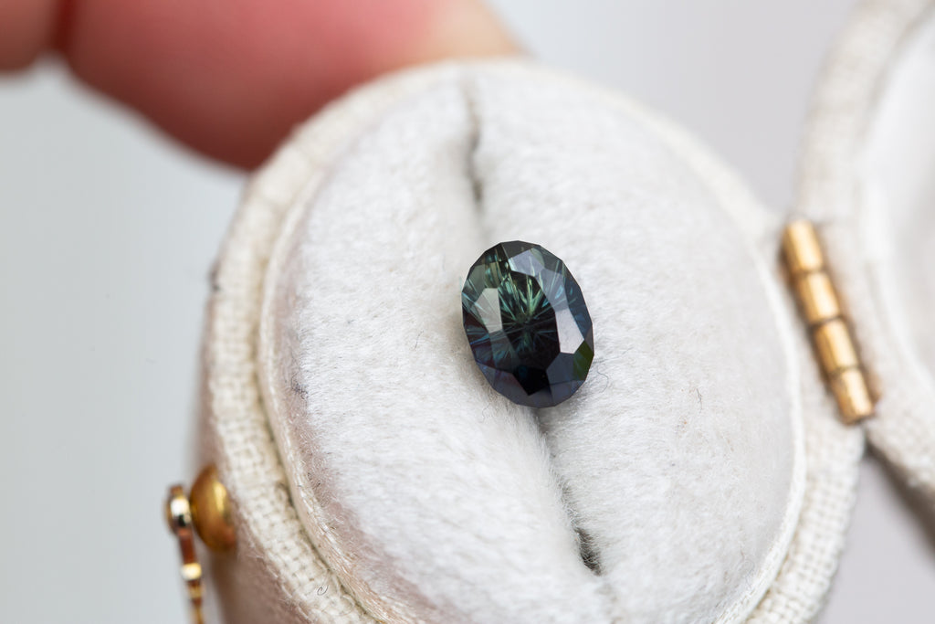 1.56ct oval dark blue green sapphire (almost black)-Starbrite cut by John Dyer