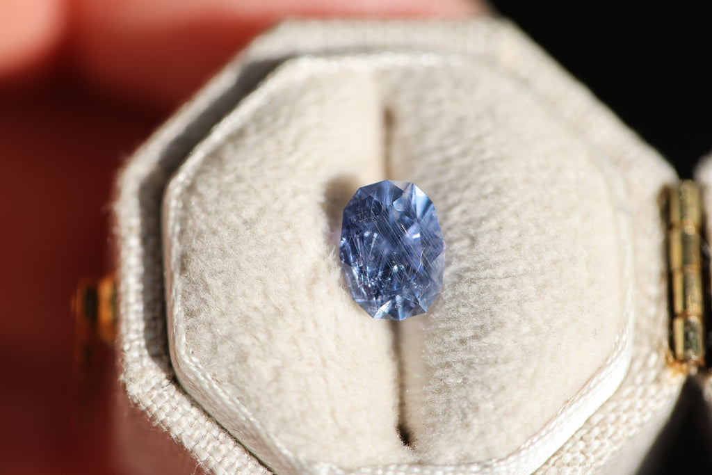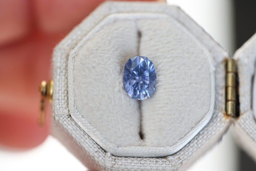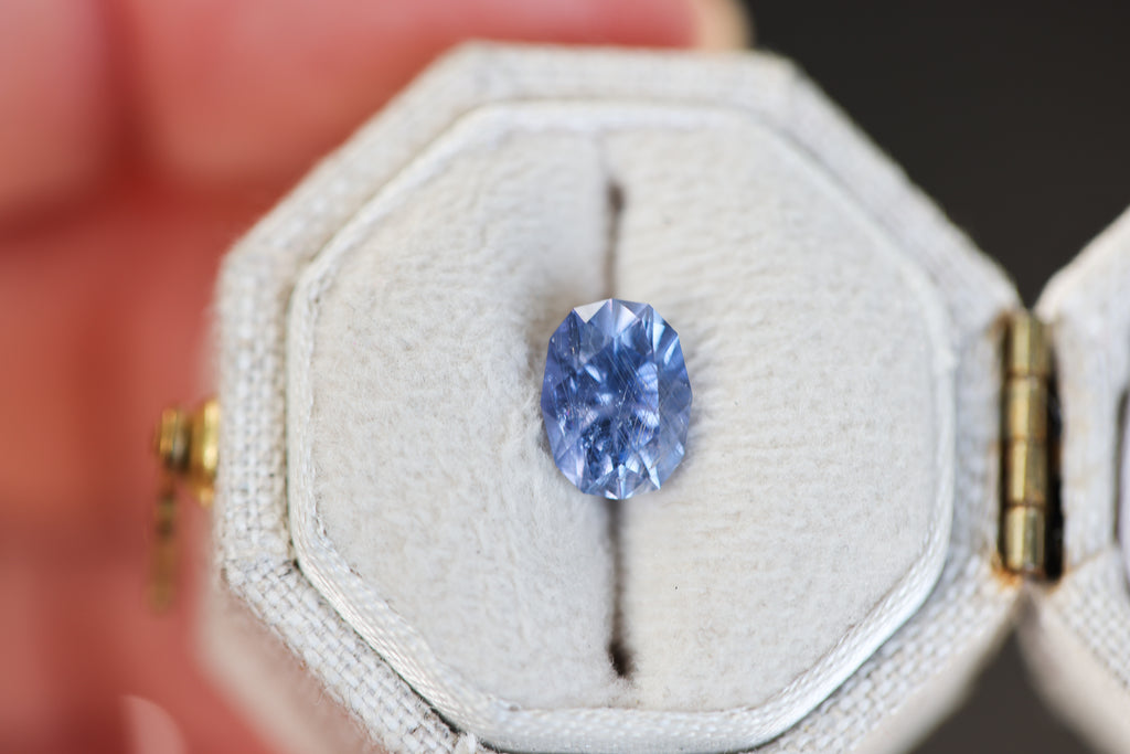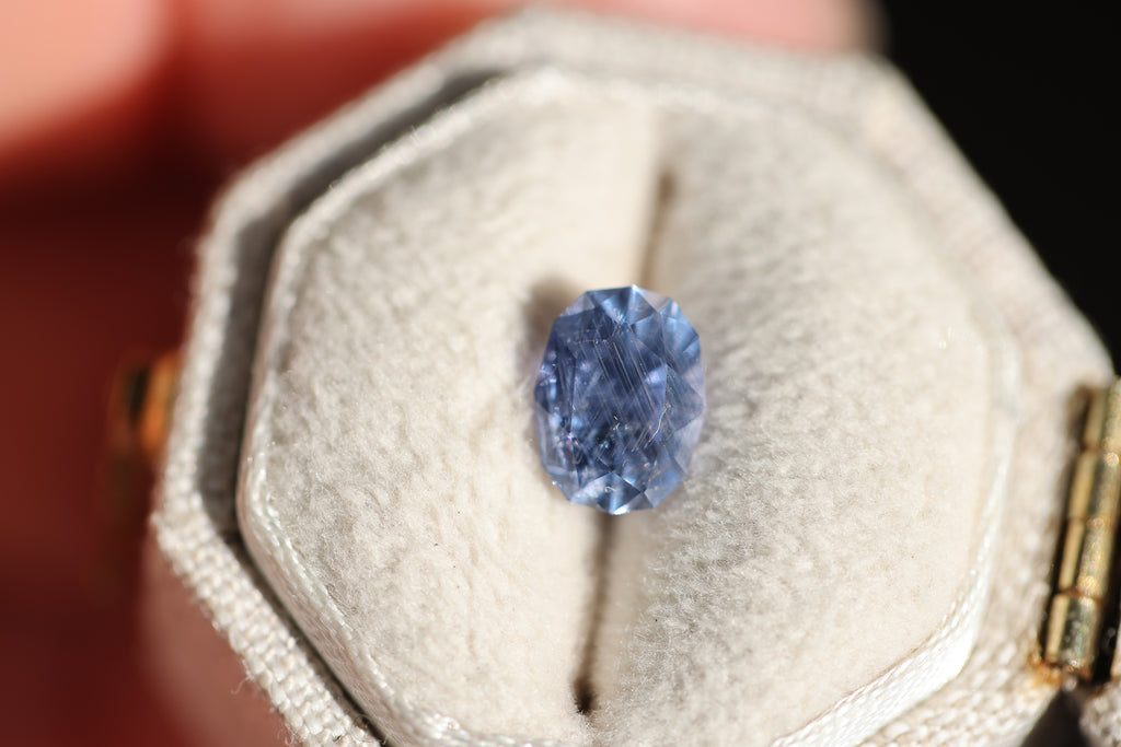 This gorgeous oval Umba sapphire is mostly a purple color but shifts to a purple/grey in certain lighting! It has stunning faceting and is just an absolute beauty with some really unique inclusions.