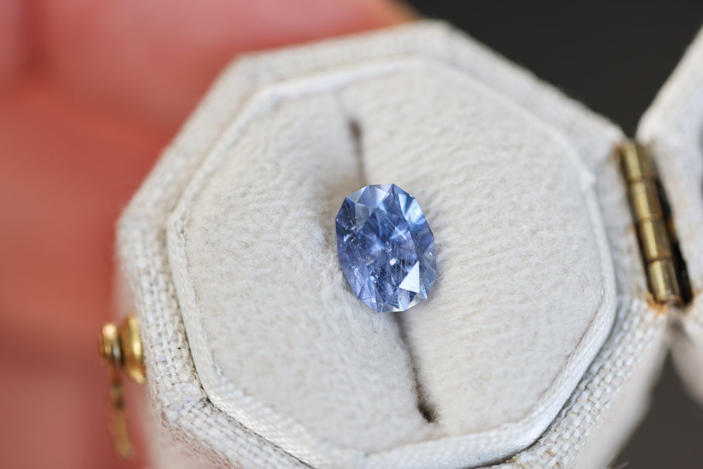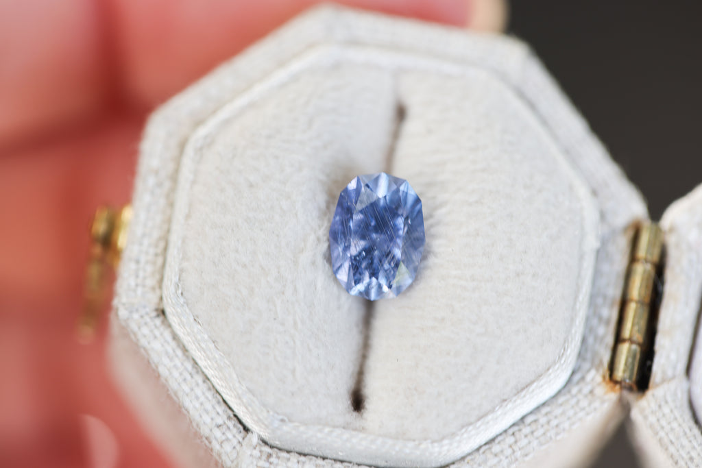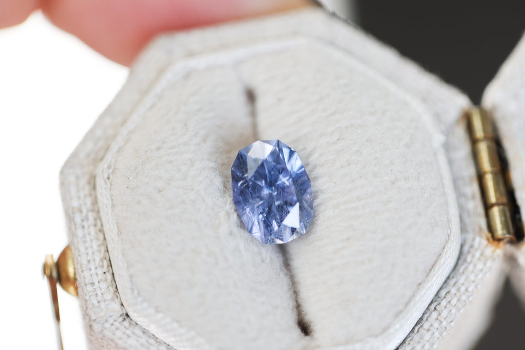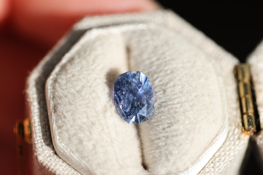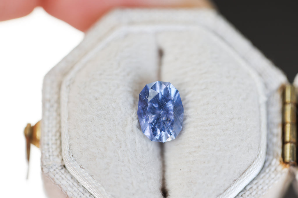 This gorgeous oval Umba sapphire is mostly a purple color but shifts to a purple/grey in certain lighting! It has stunning faceting and is just an absolute beauty with some really unique inclusions.