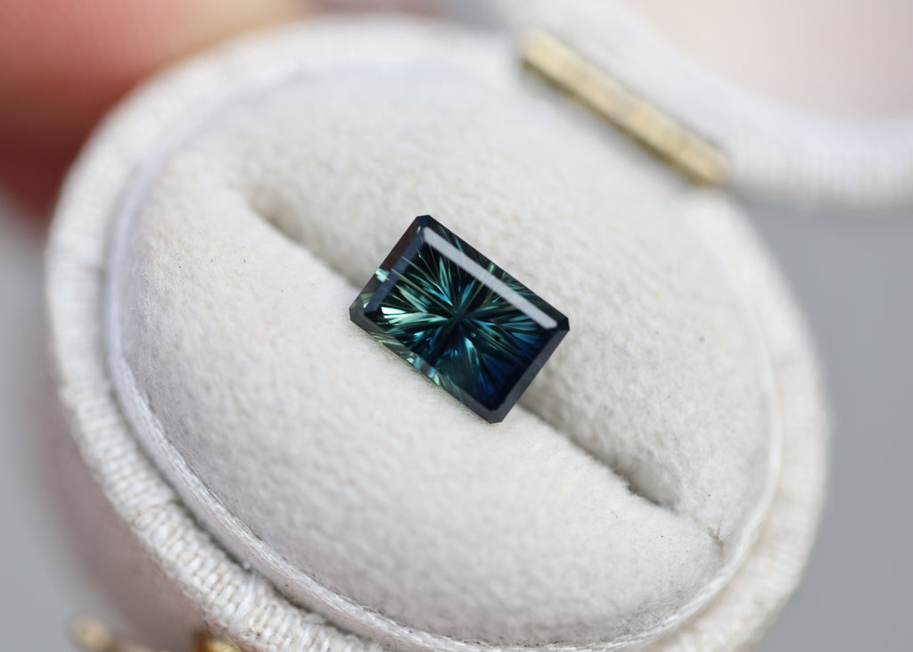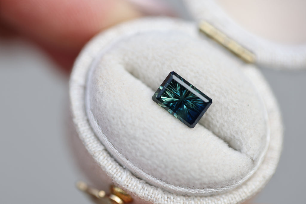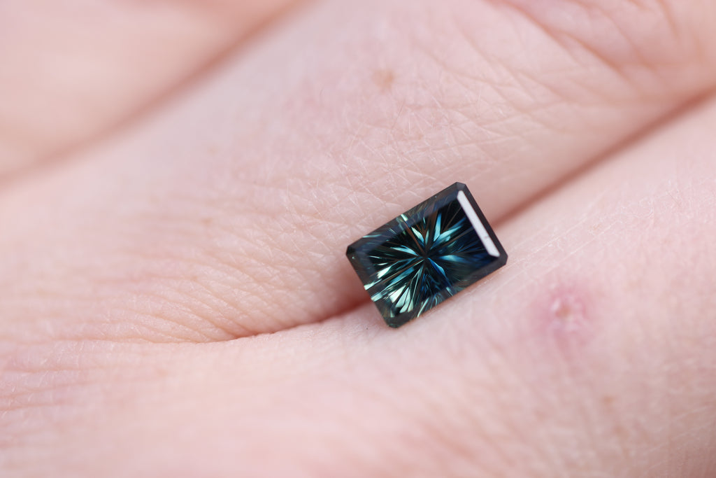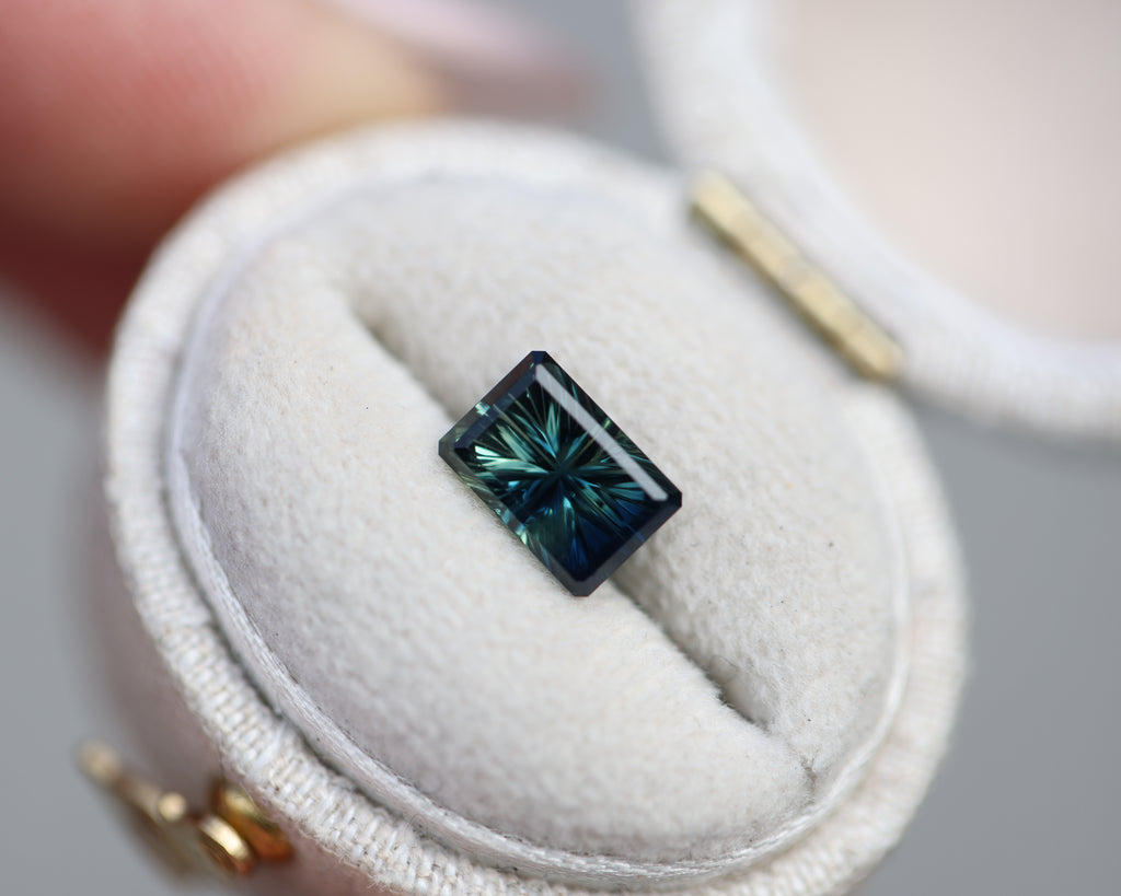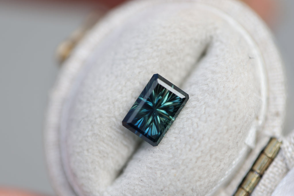 1.59ct rectangle deep teal sapphire - Starbrite cut by John Dyer
