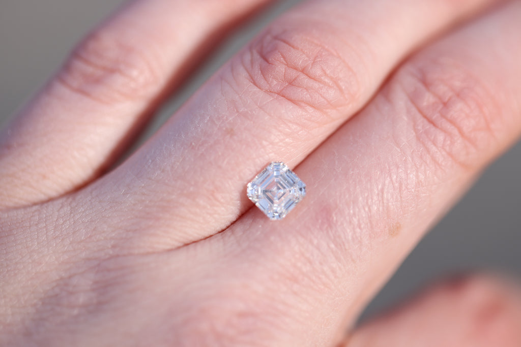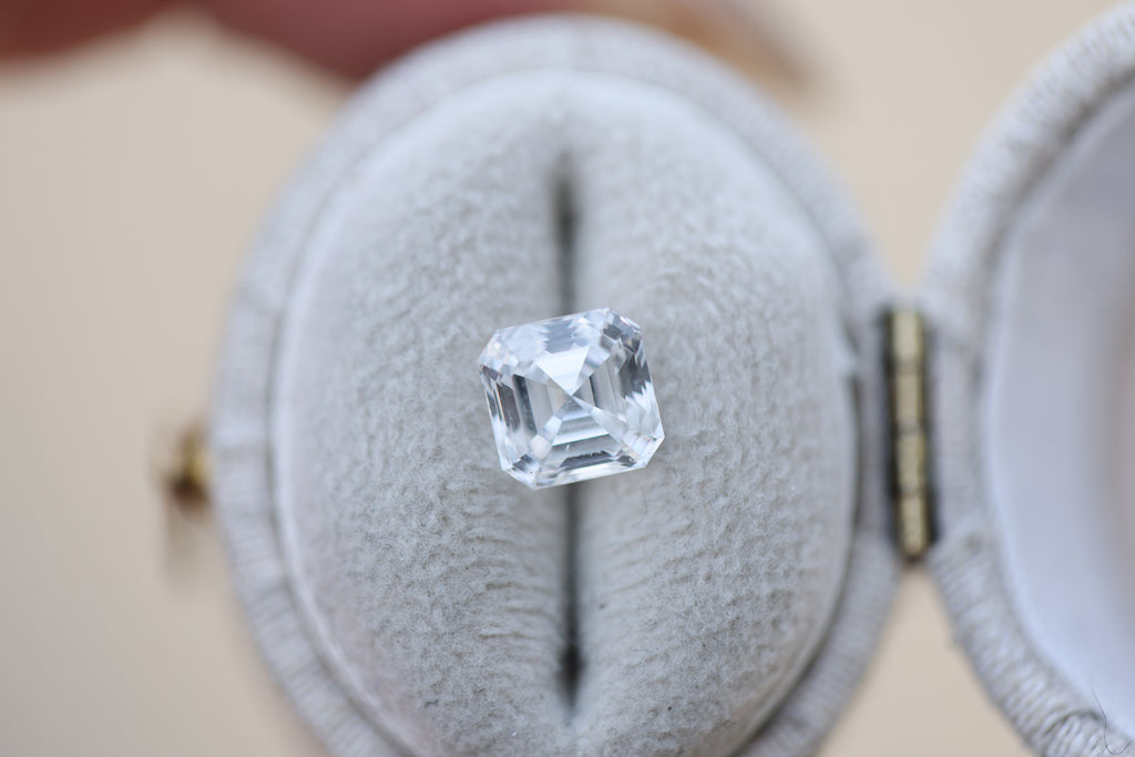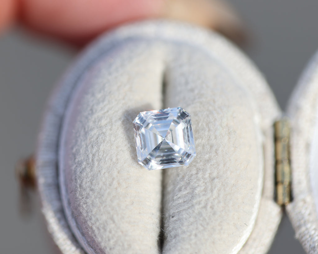 This absolute beauty is an asscher cut lab diamond that is just such a regal stunner!