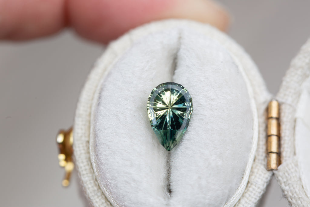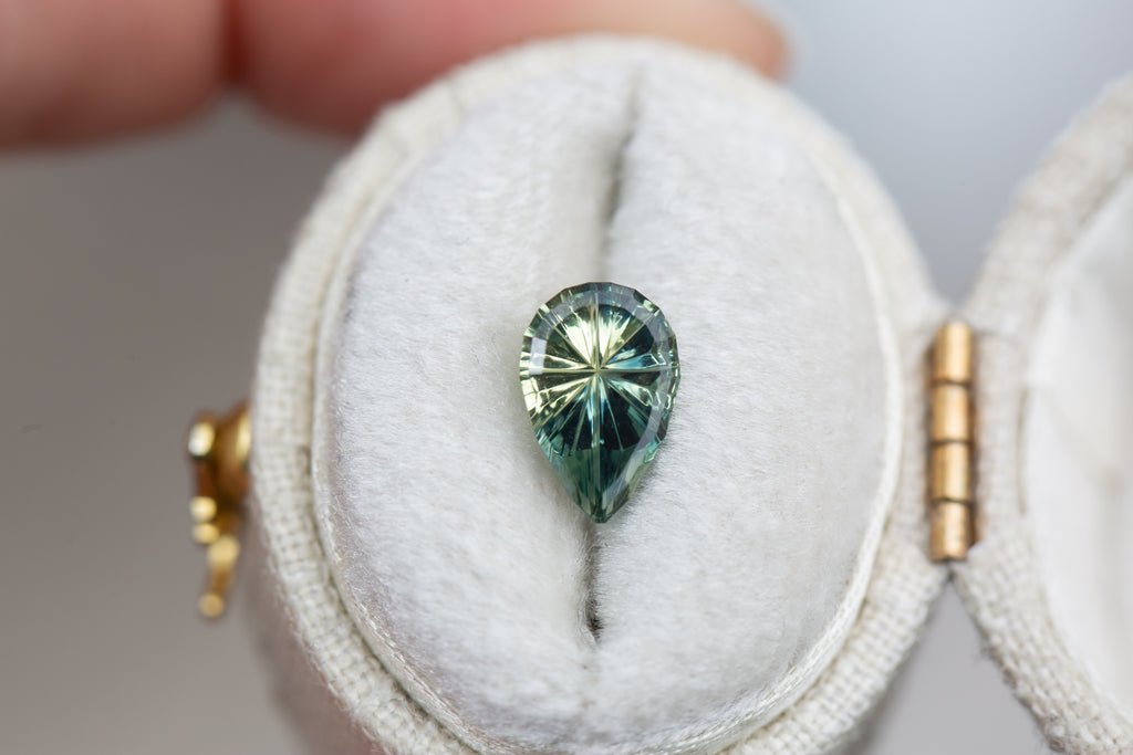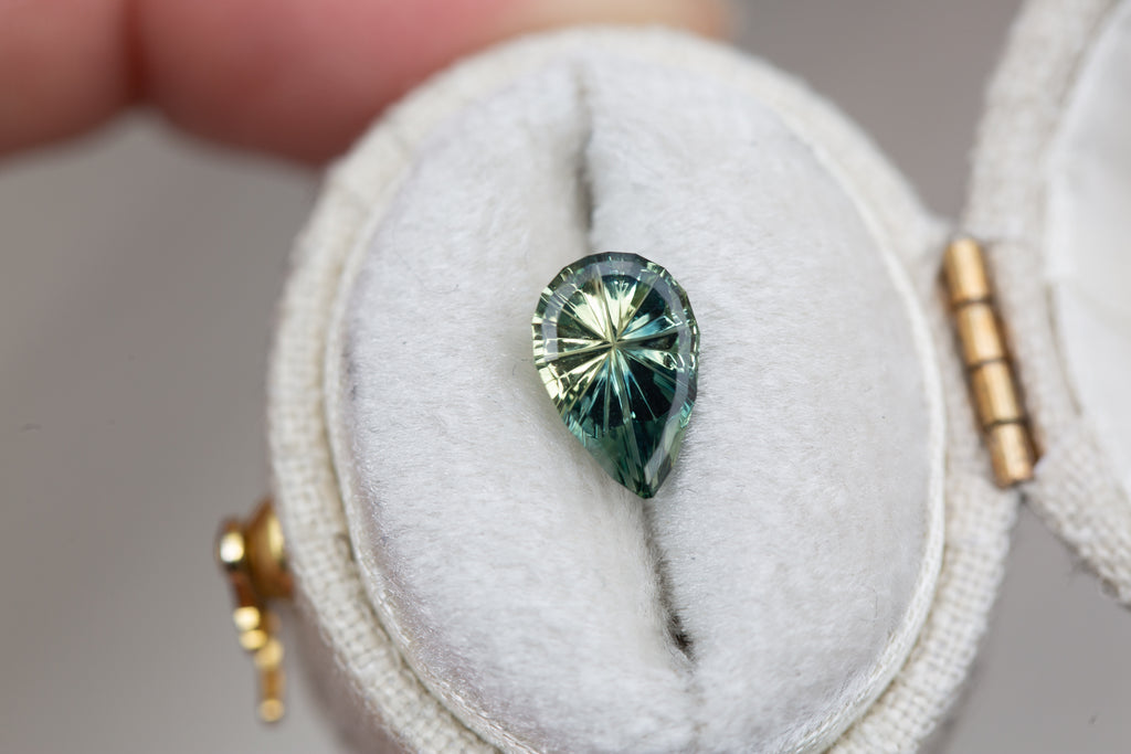 1.61ct pear parti green teal Starbrite sapphire from John Dyer