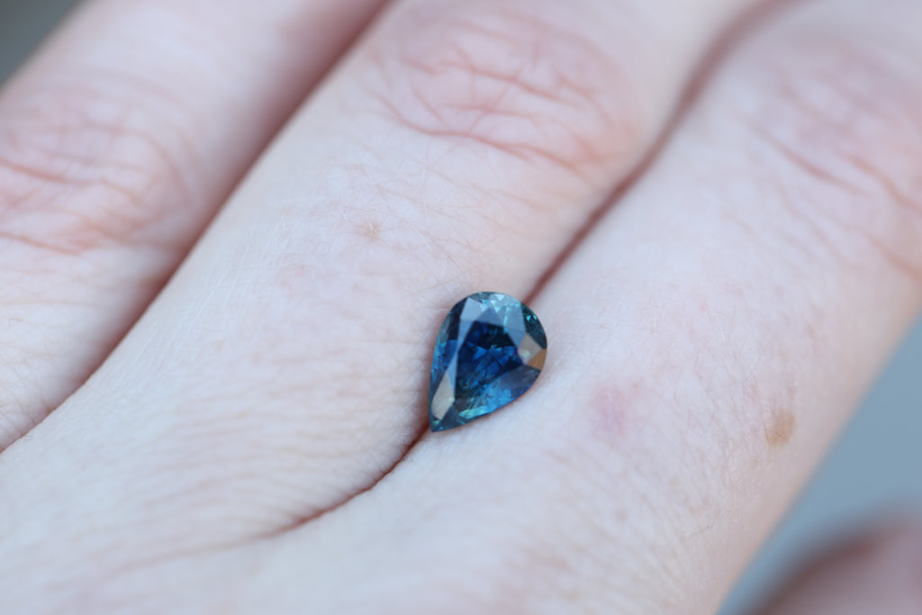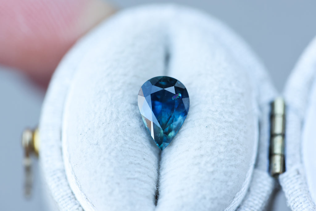 This gorgeous pear sapphire is a beautiful deep rich blue teal - just a stunner!