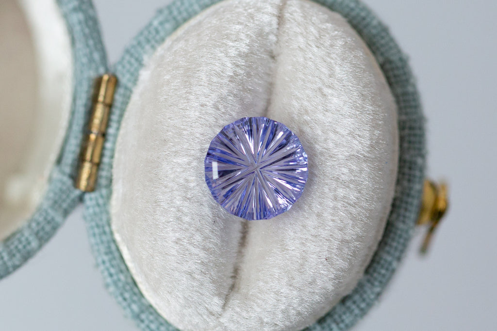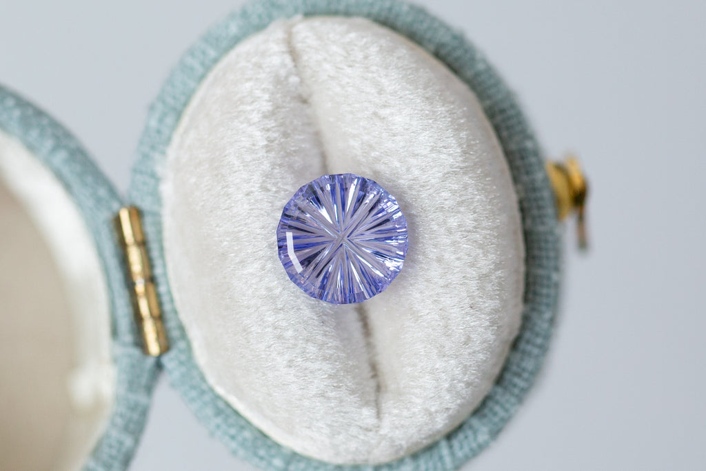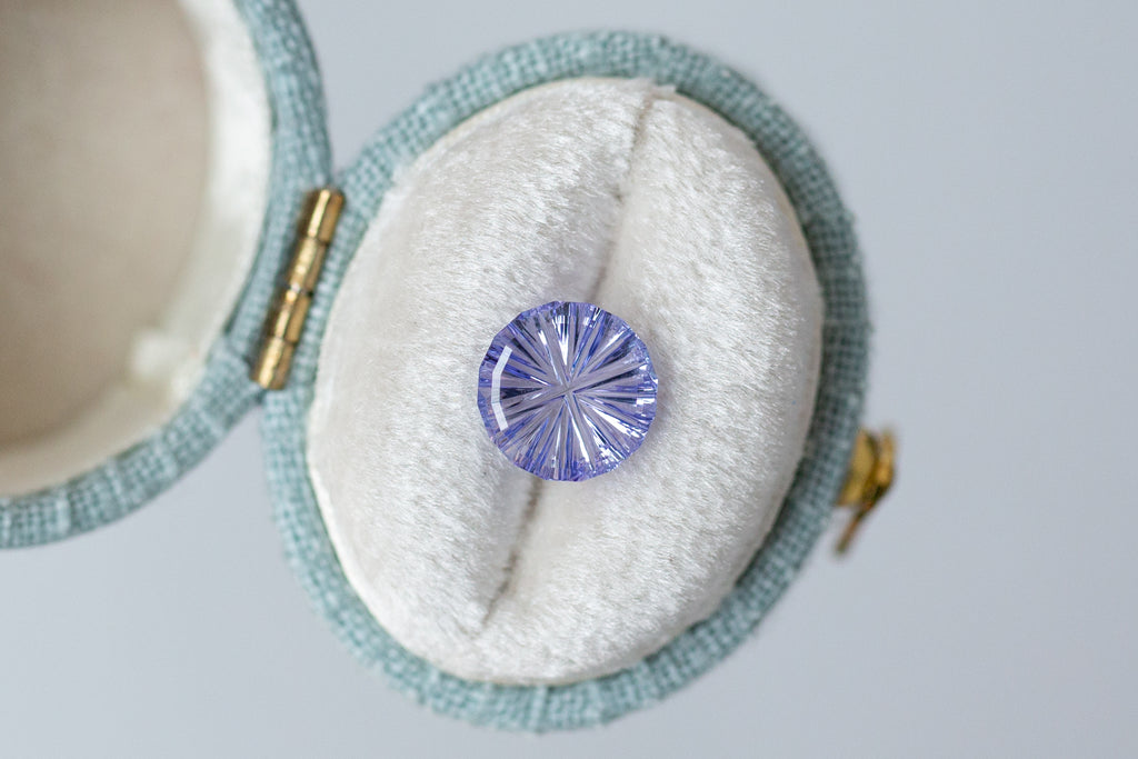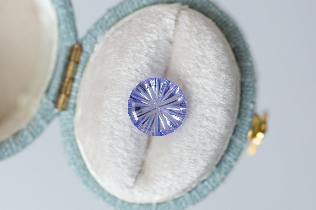 This round tanzanite is a custom cut Starbrite by award winning gem cutter, John Dyer! It is so so pretty and is going to make a truly stand out ring!