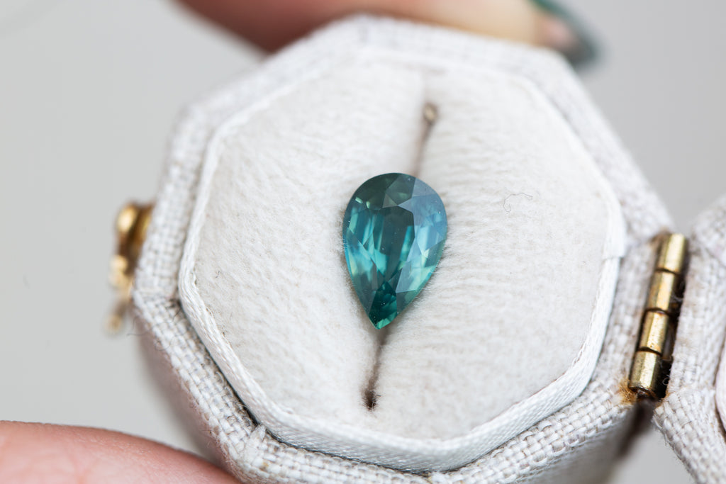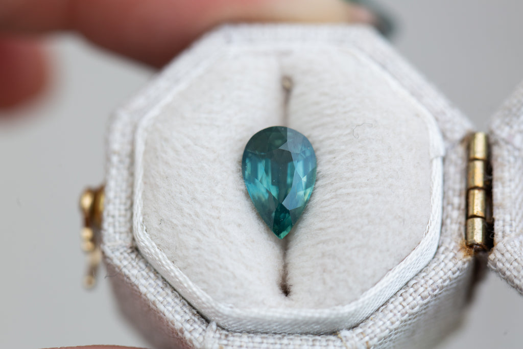 This gorgeous deep teal pear sapphire has some silkiness known to the Gombe region and is just such a beautiful stone!