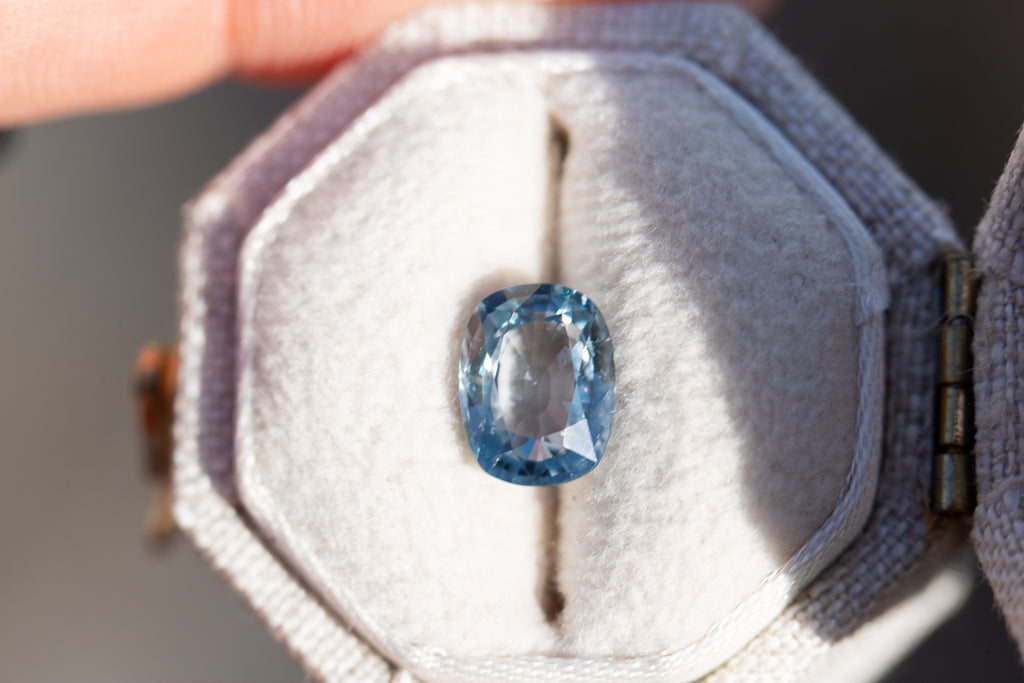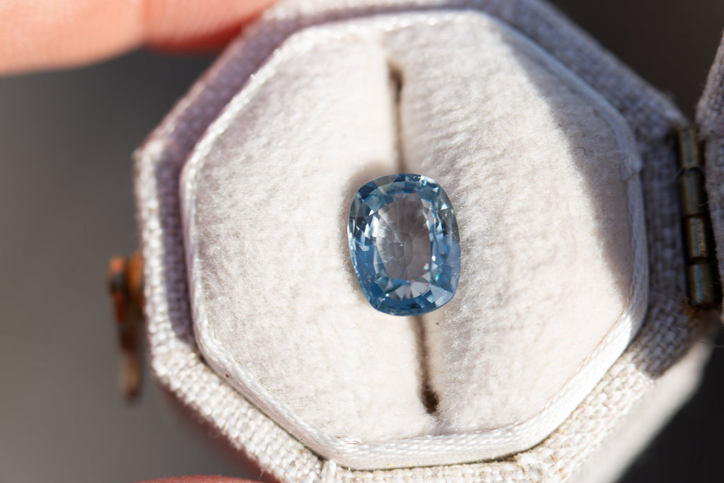 1.66ct cushion cut blue grey sapphire