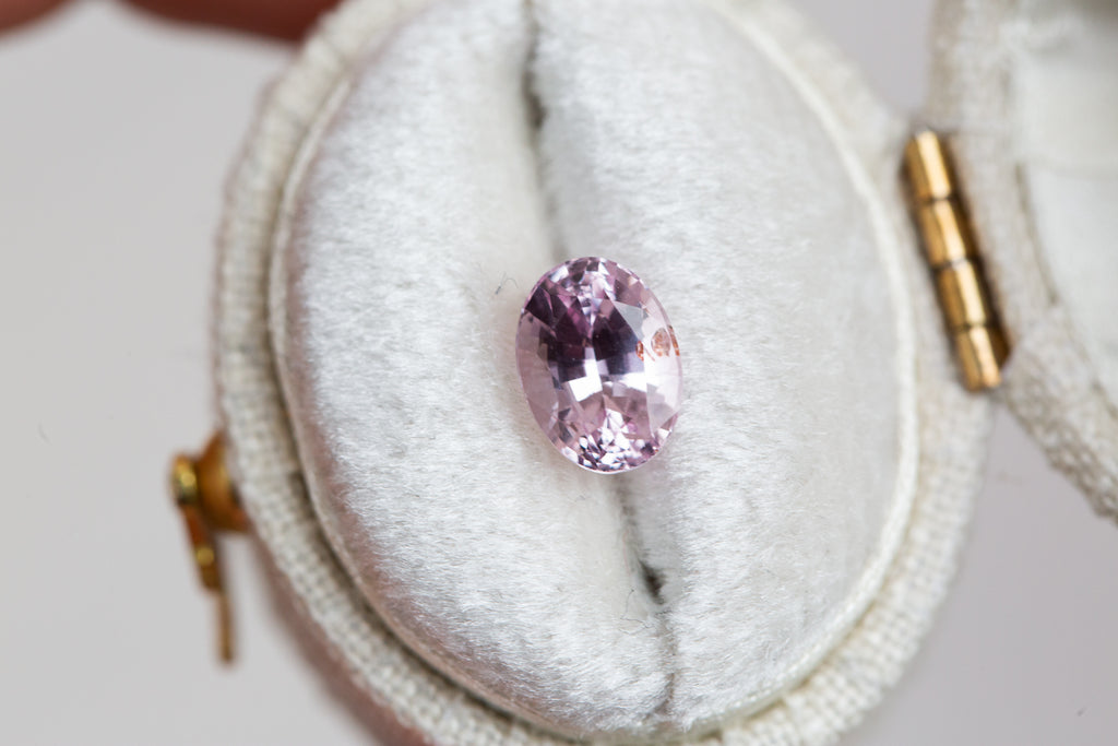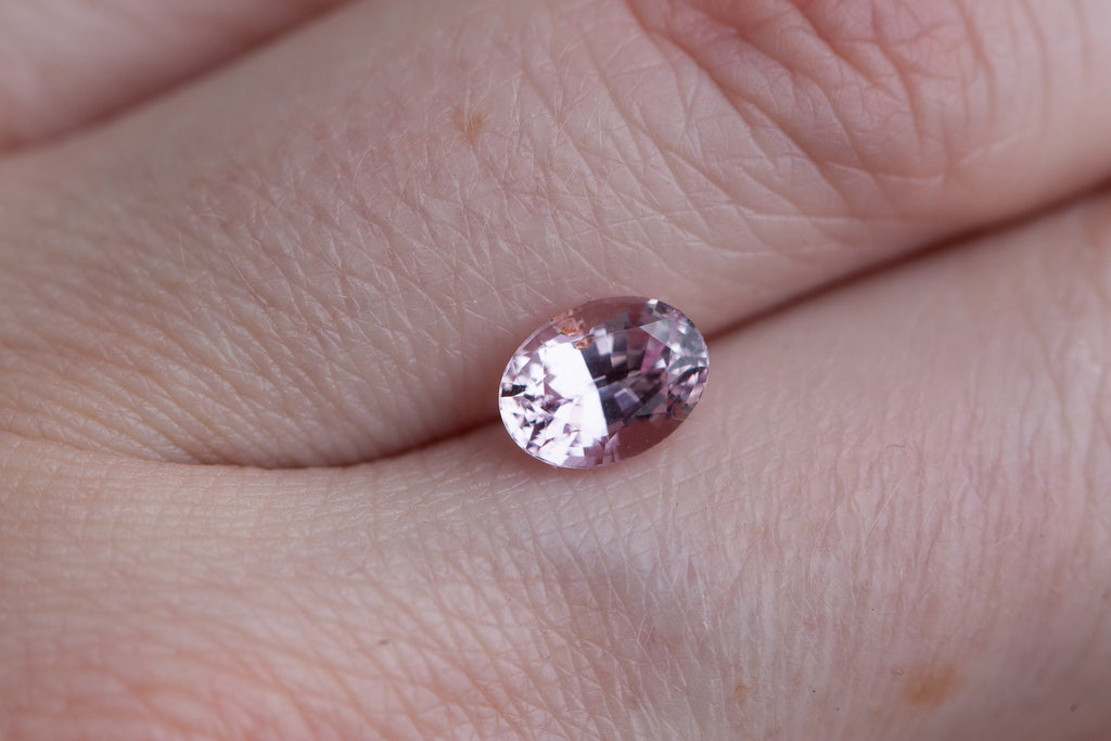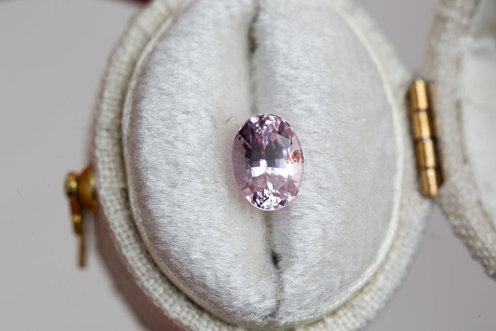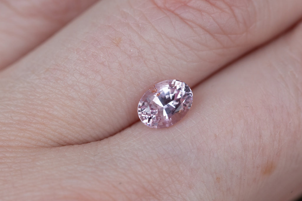 This gorgeous sapphire is the loveliest light pink with a small unique orange inclusion! It is such a beauty with lots of sparkle!