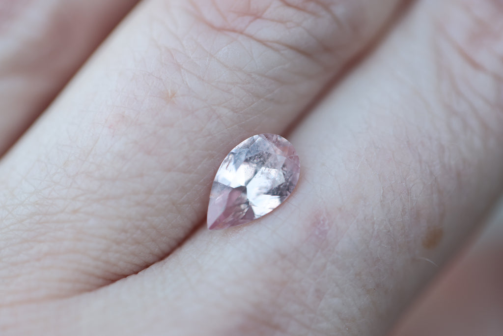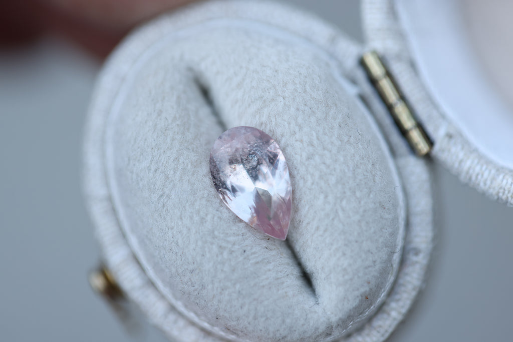 This gorgeous pear sapphire is the prettiest light pink peachy with some really unique inclusions! Such a special one of a kind stone!