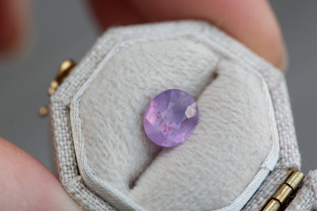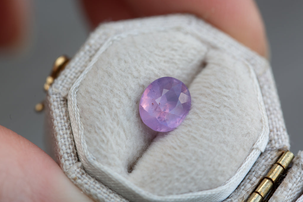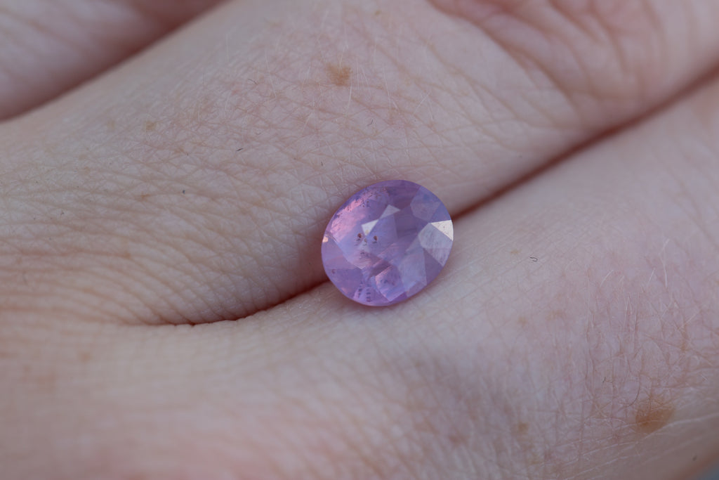 This absolutely magical beauty is an oval opalescent pink purple sapphire that will make such a special piece!