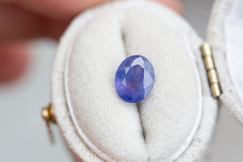 This gorgeously rich purple sapphire has such vibrant coloring while being fully opaque which gives the stone such a moody beauty!
