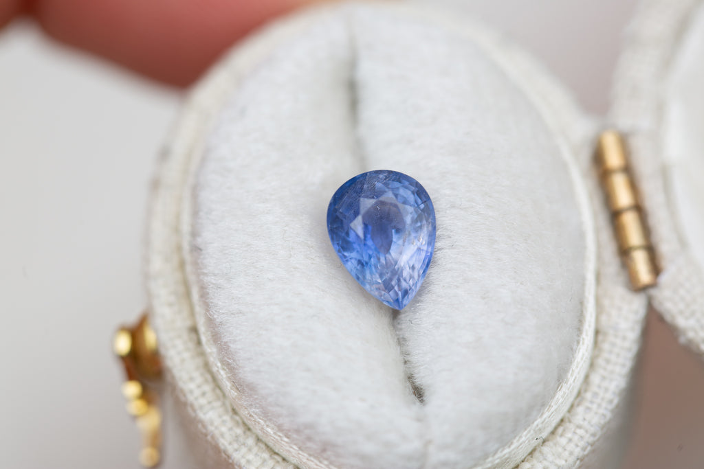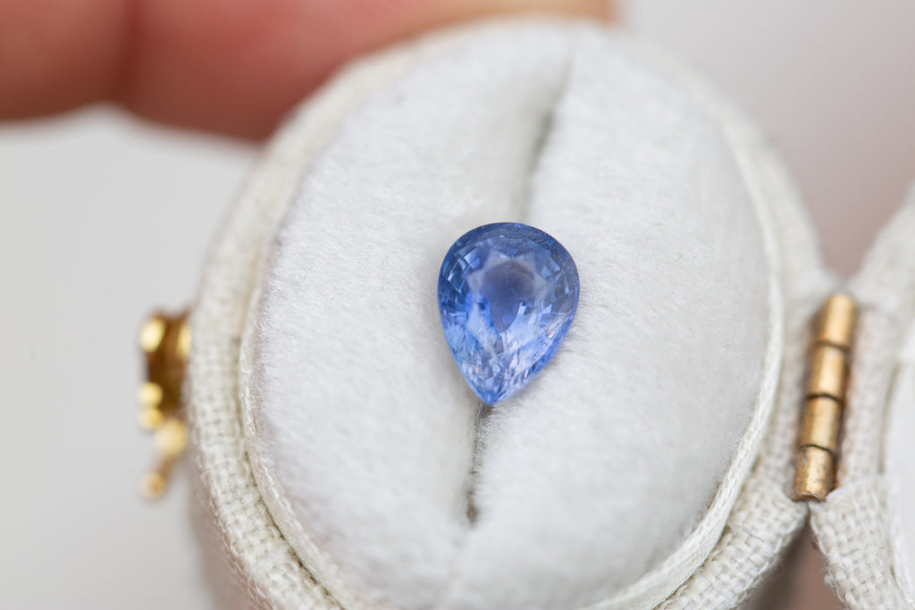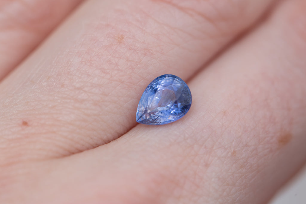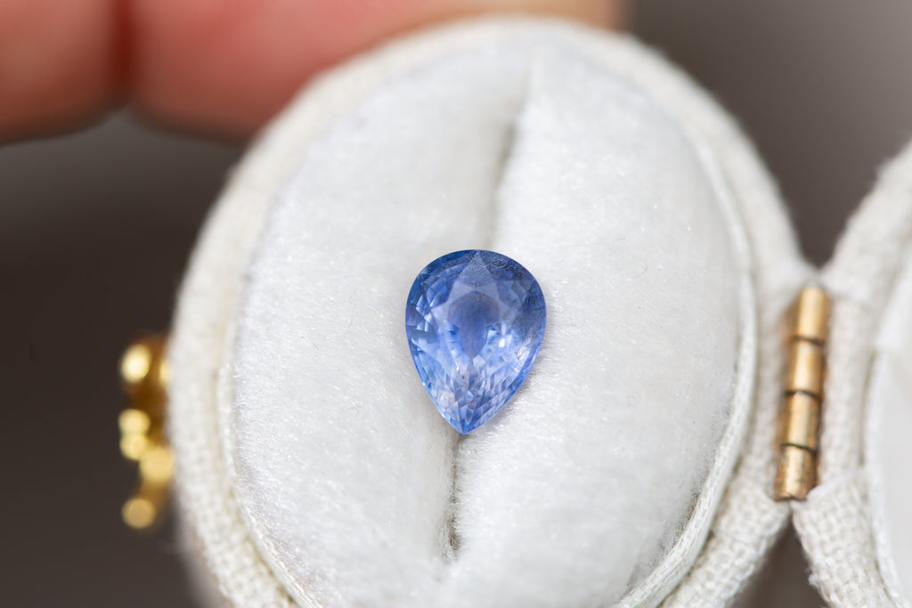 This beautiful pear sapphire is such a lovely periwinkle with incredible sparkle