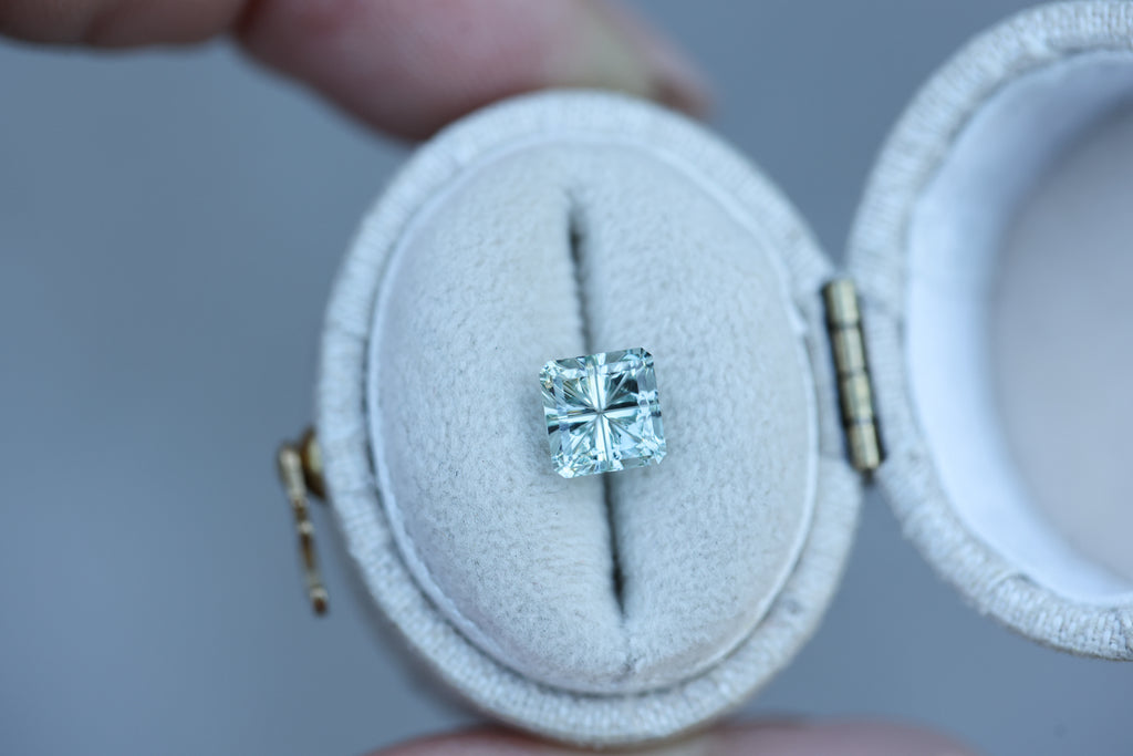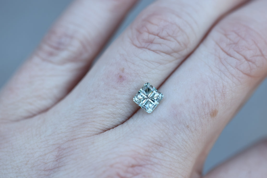 1.60ct square light green grey sapphire, Starbrite cut by John Dyer
