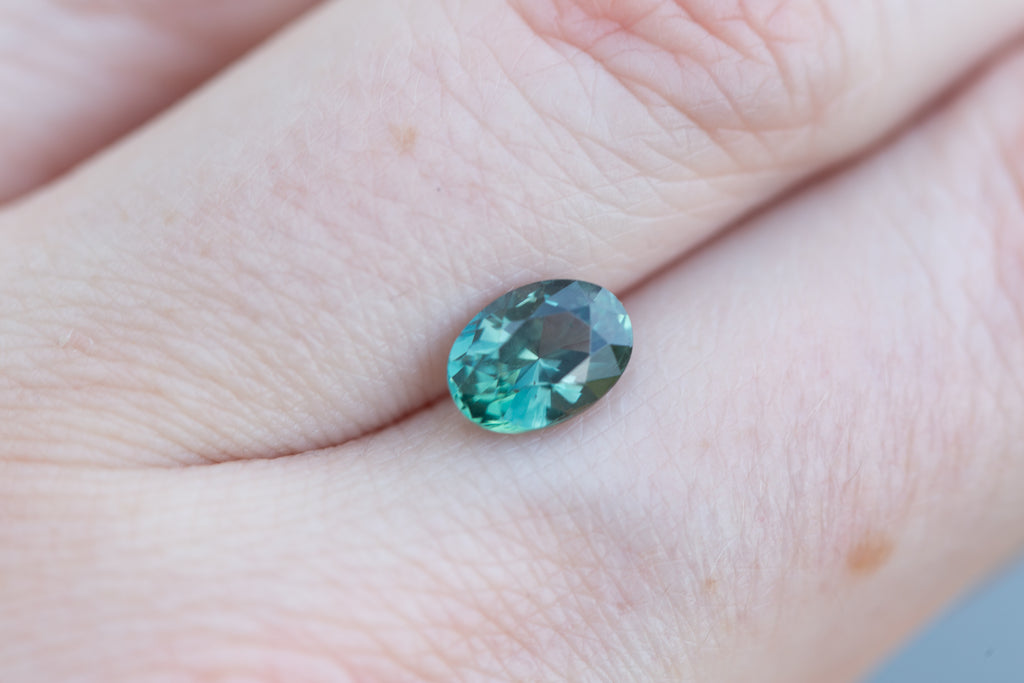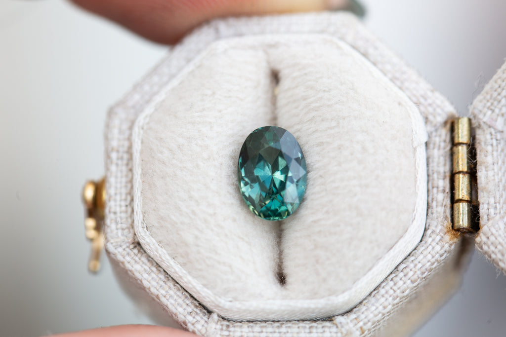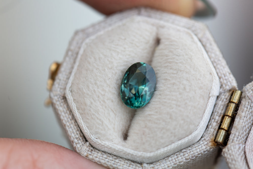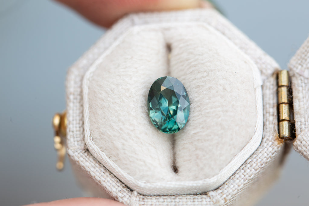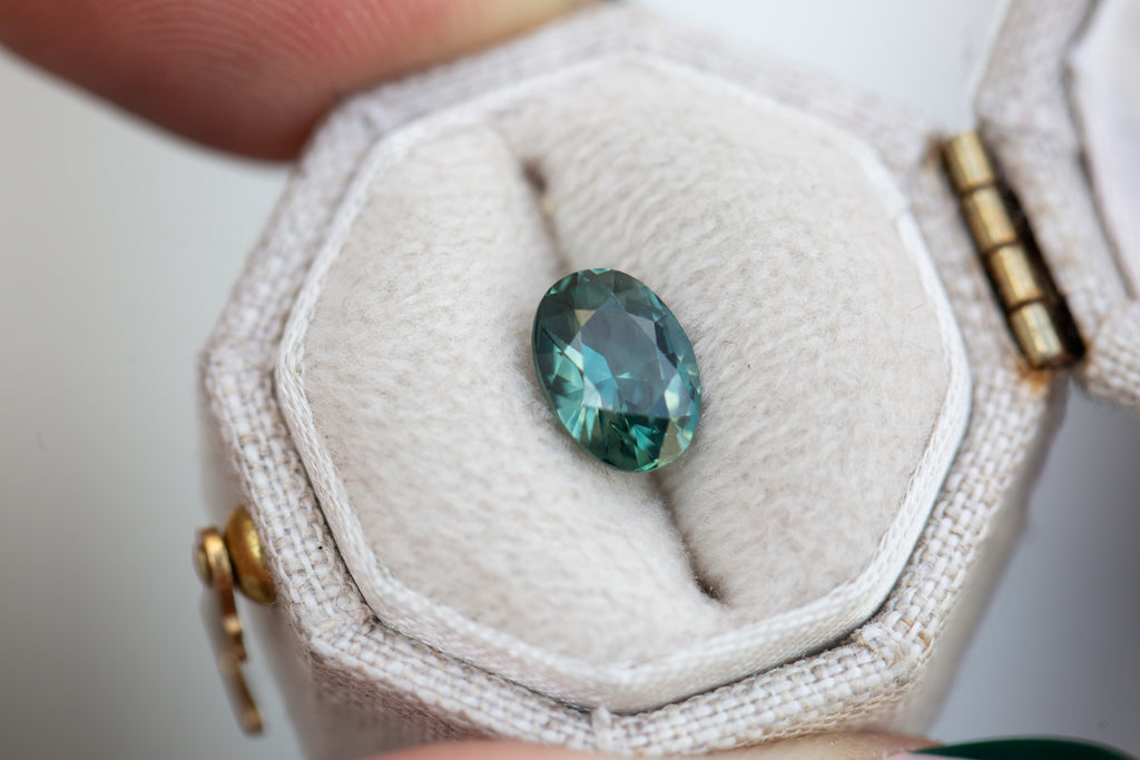 This beautiful oval teal sapphire has such gorgeous coloring and sparkle!