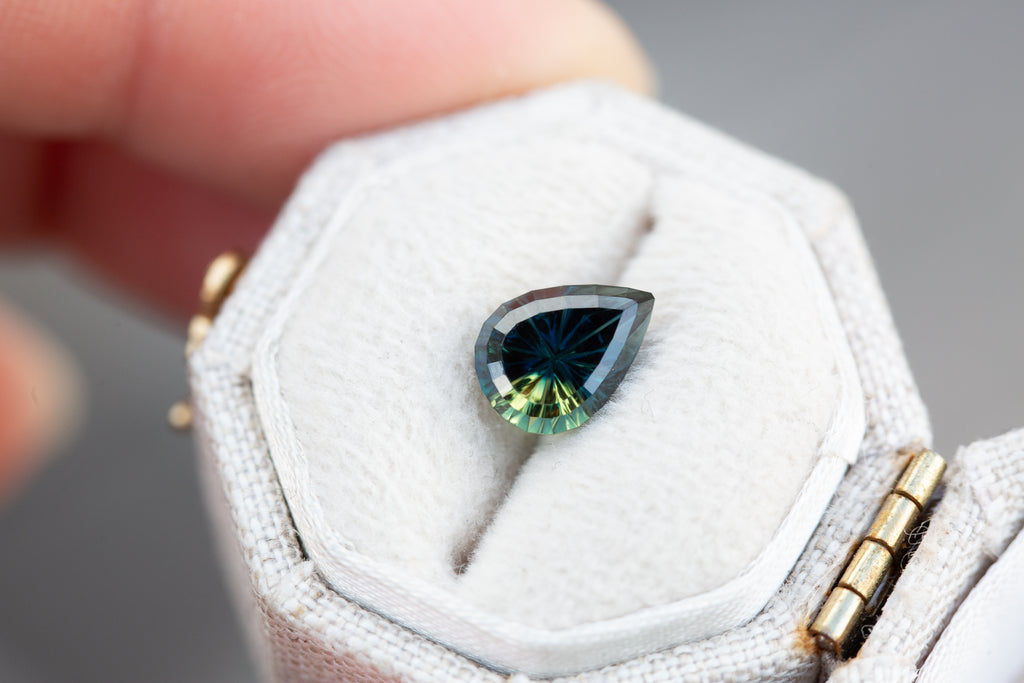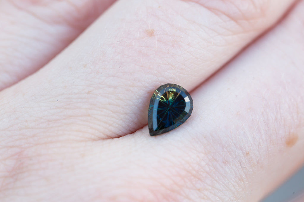 1.78ct pear deep dark blue yellow parti sapphire - Starbrite cut by John Dyer