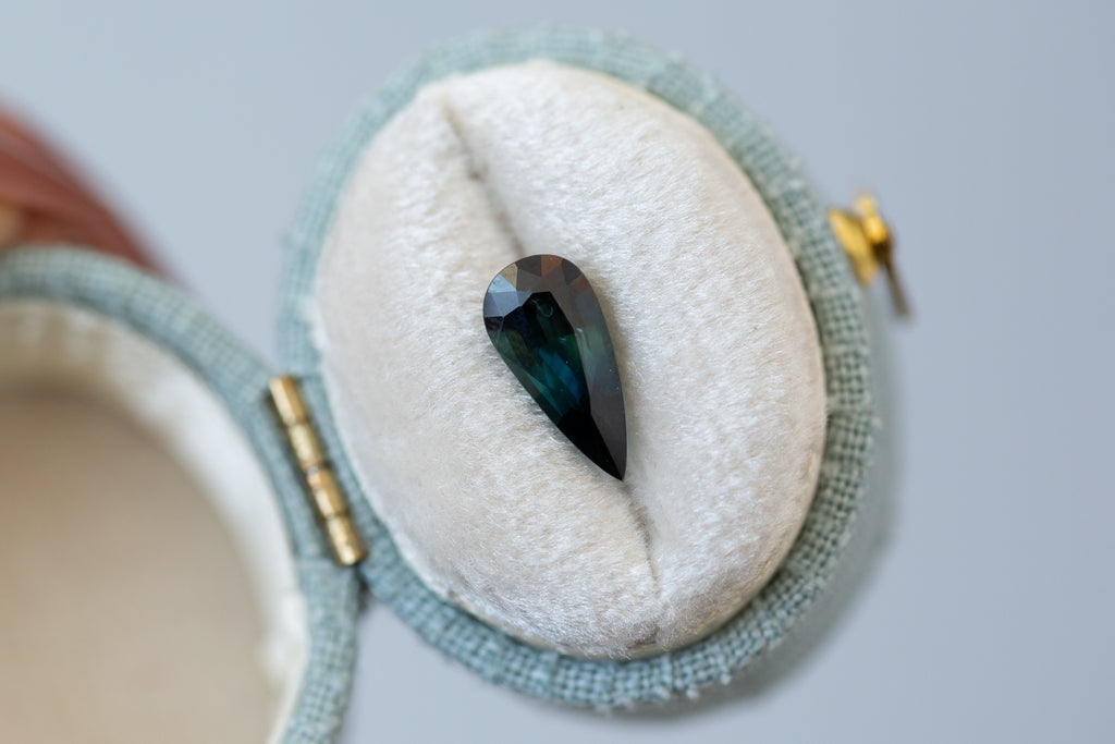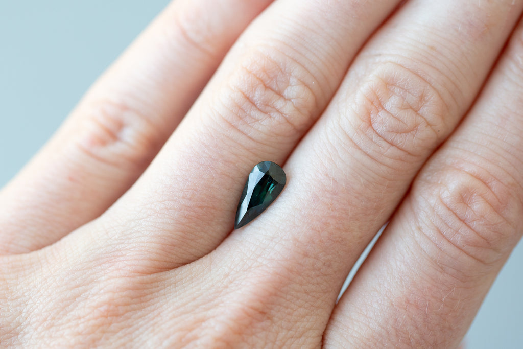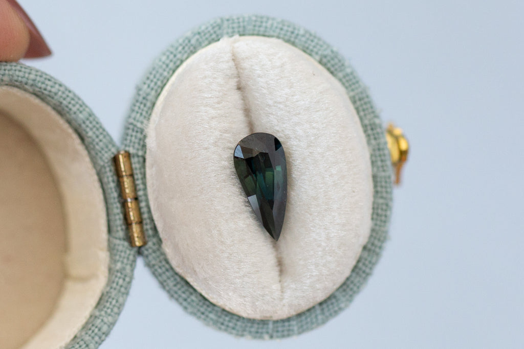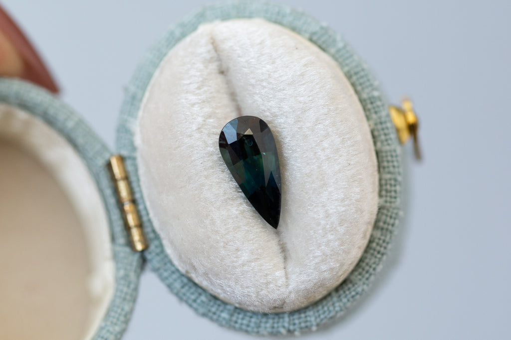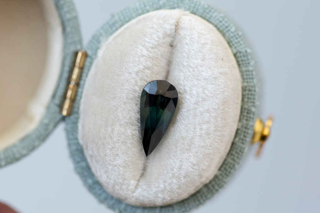 1.79ct Elongated Pear Deep Teal Green Sapphire