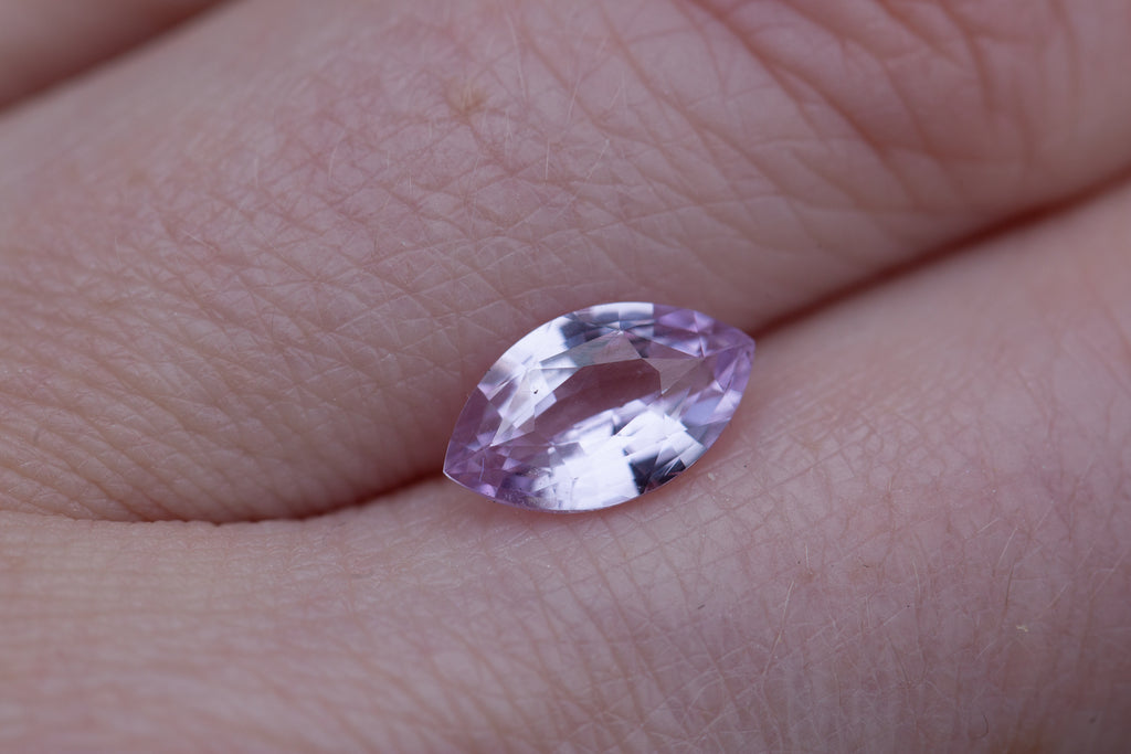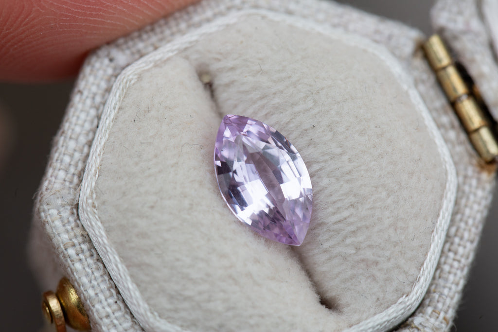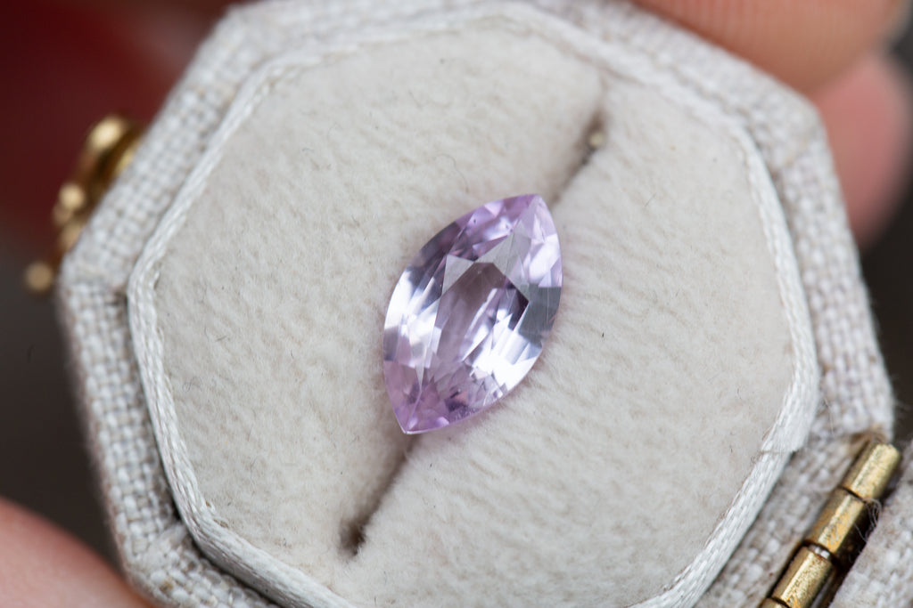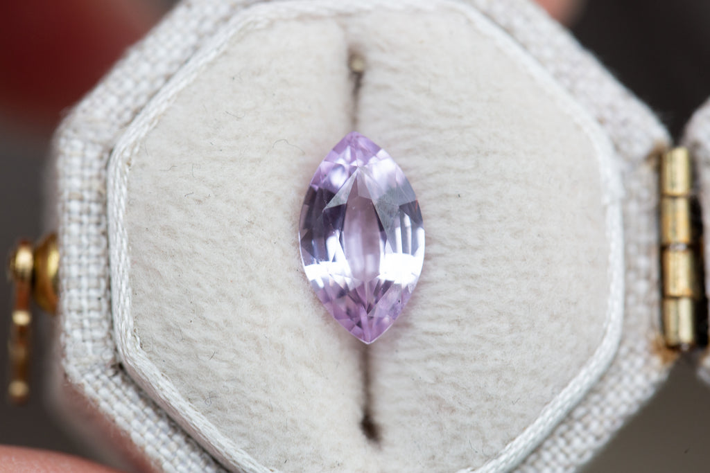 This gorgeous marquise sapphire is the prettiest pink with lavender undertones! It has tons of beautiful faceting for some incredible sparkle!