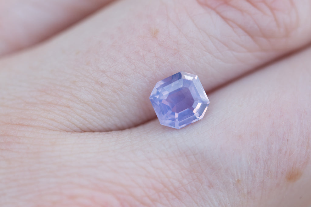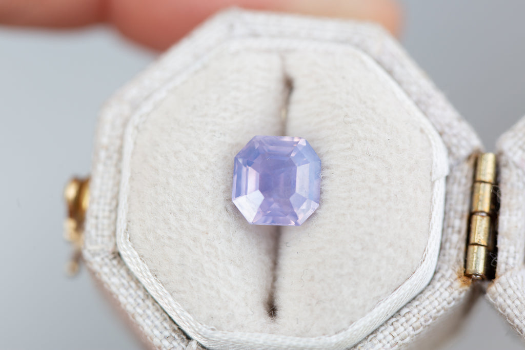This absolutely incredible octagonal step cut sapphire is the loveliest icy opalescent lavender - it is such a gorgeous stone and will make a very special piece!