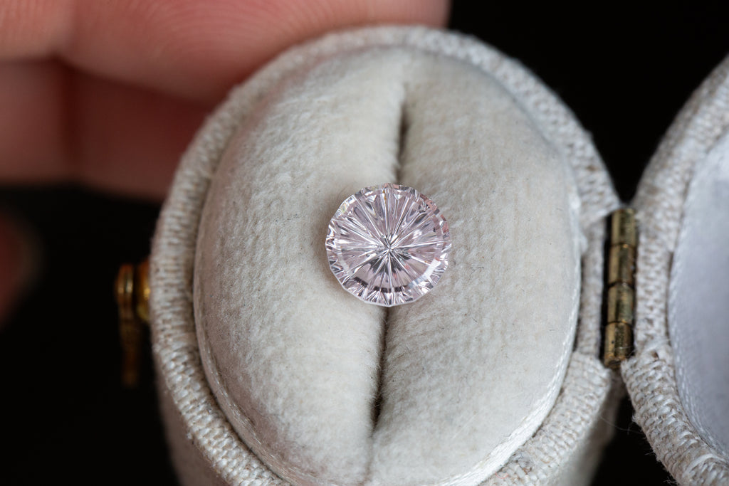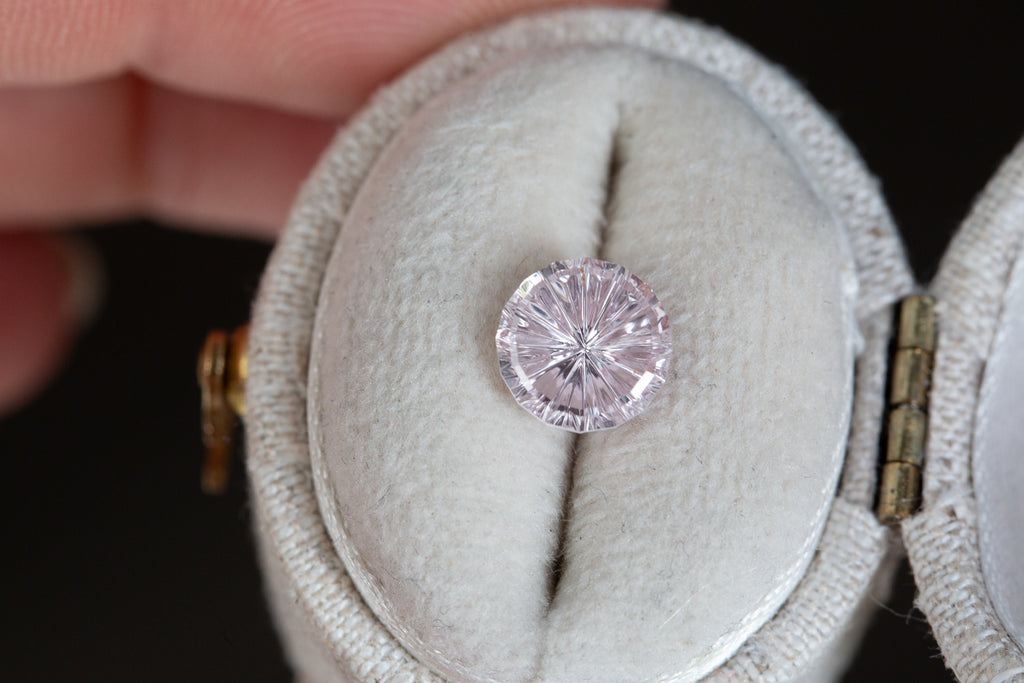 This absolutely stunning round icy light pink sapphire is the most incredible Starbrite cut by award winning gem cutter John Dyer. It is just the perfect mix of icy brightness and a hint of lovely light pink - just such a gorgeous stone!