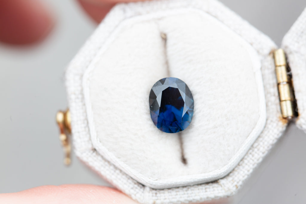 This stunning oval sapphire is such a gorgeous deep dark blue with some beautiful sparkle!