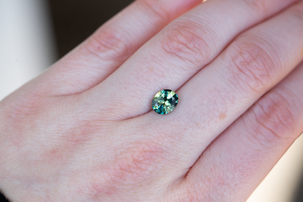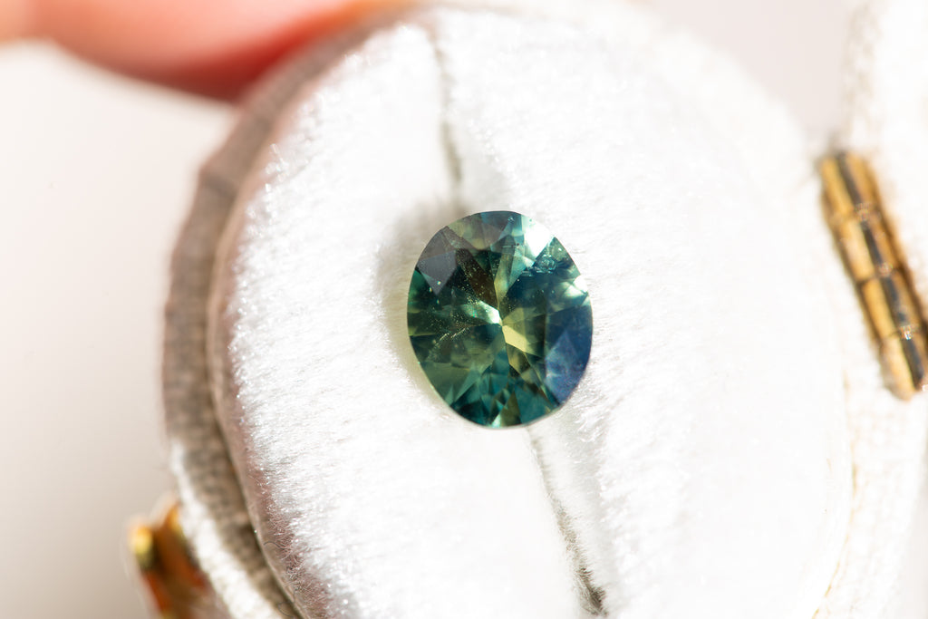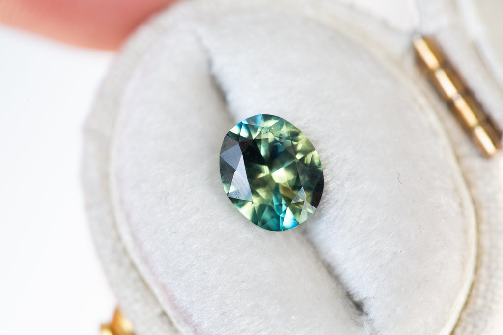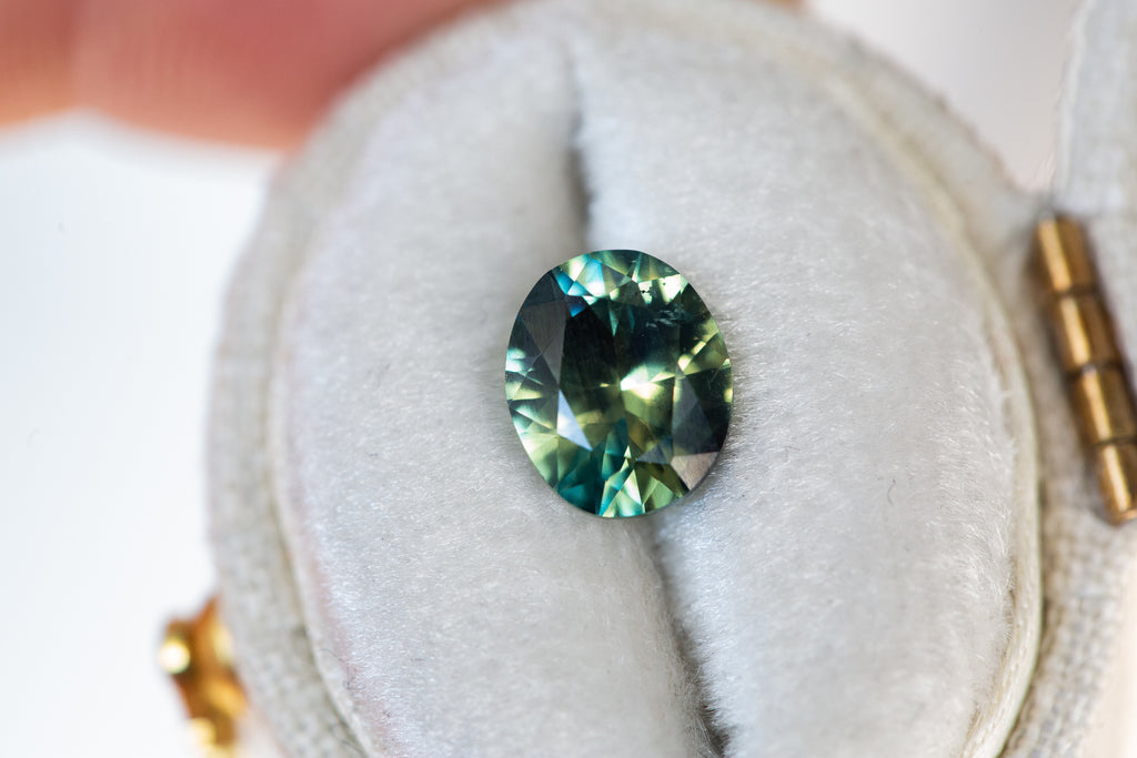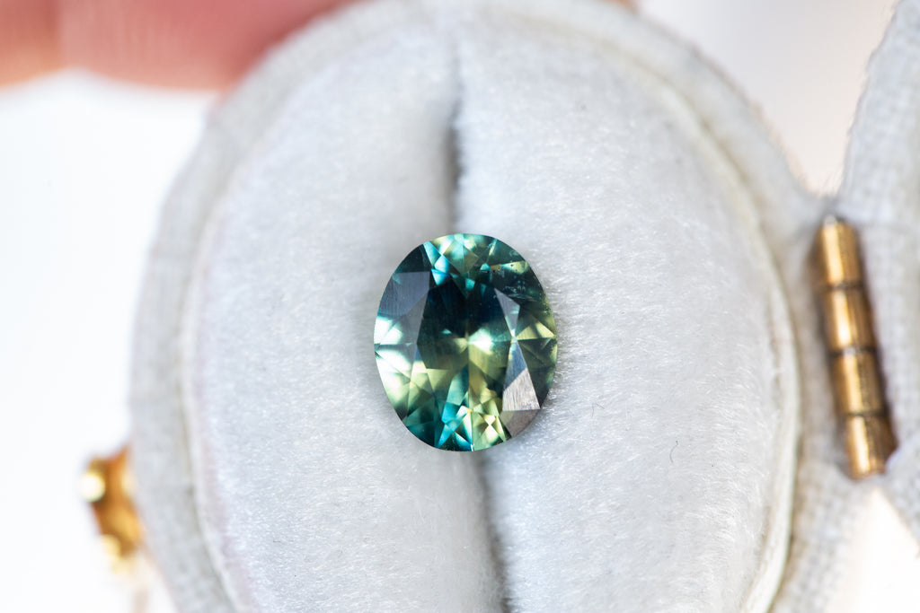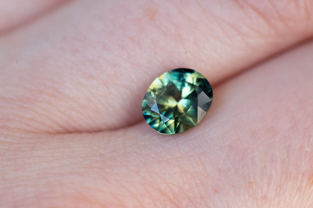 Parti sapphire with a mix of green/blue/teal and yellow