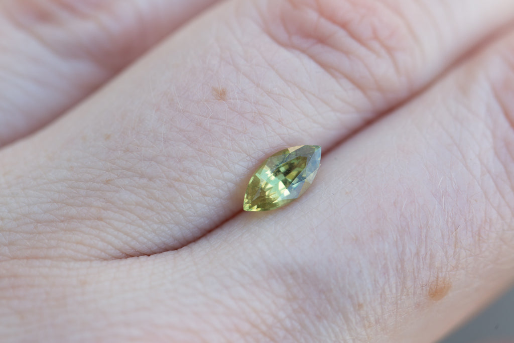 This beautiful marquise green/yellow sapphire has the loveliest coloring! Like sunshine in a garden it is just the prettiest!