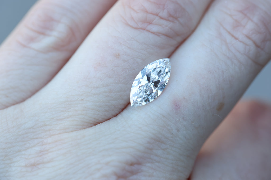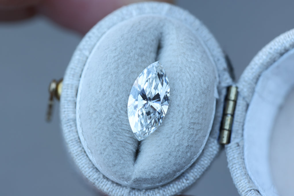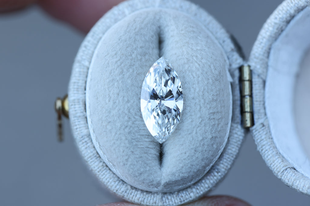This absolute beauty is such a stunning marquise lab diamond with the most gorgeous sparkle!