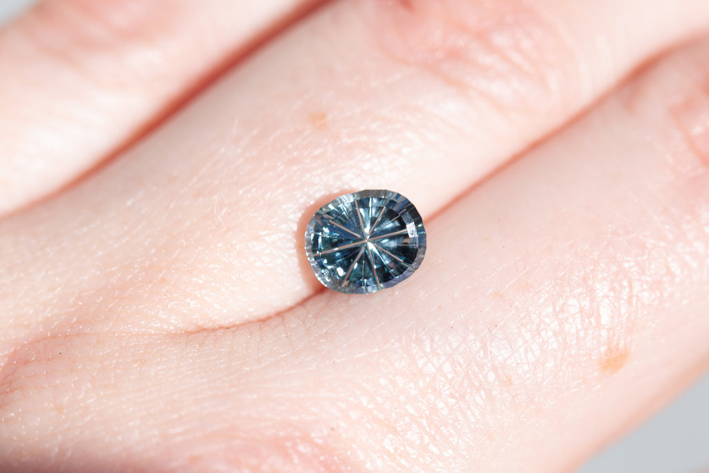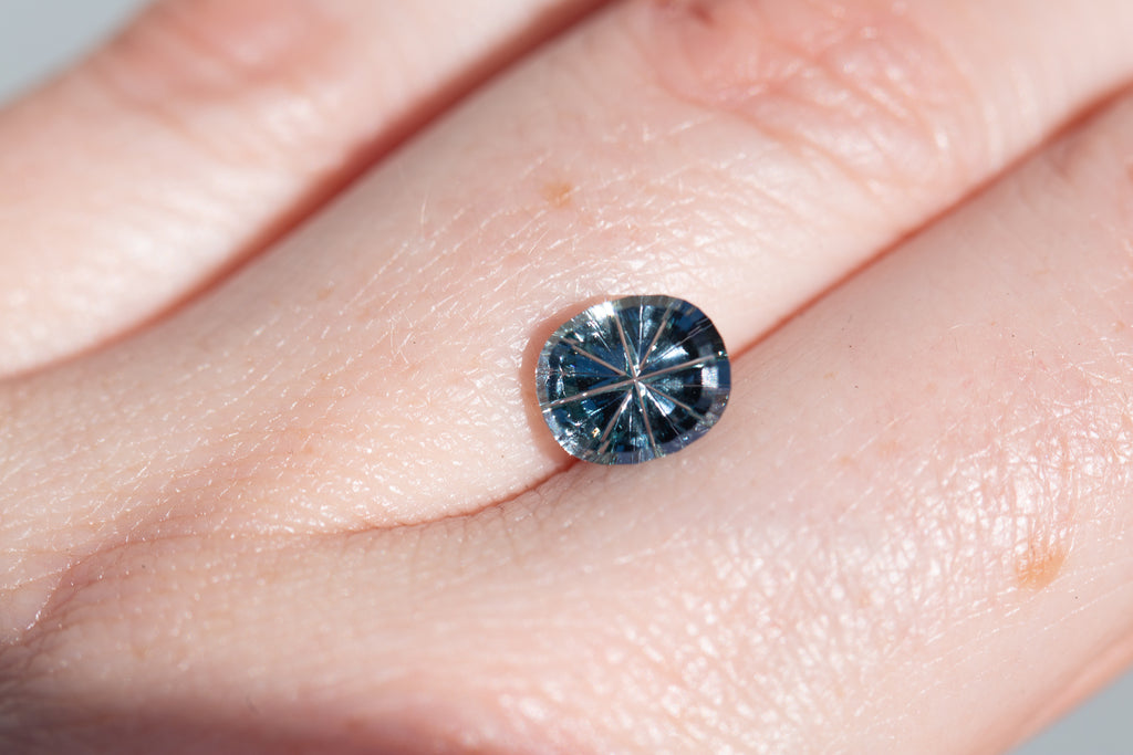This beautiful oval Starbrite cut blue sapphire has such unique faceting from award winning gem cutter John Dyer! Just an absolutely gorgeous icy starbrite effect that will make such a special one of a kind ring!