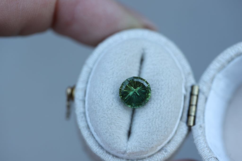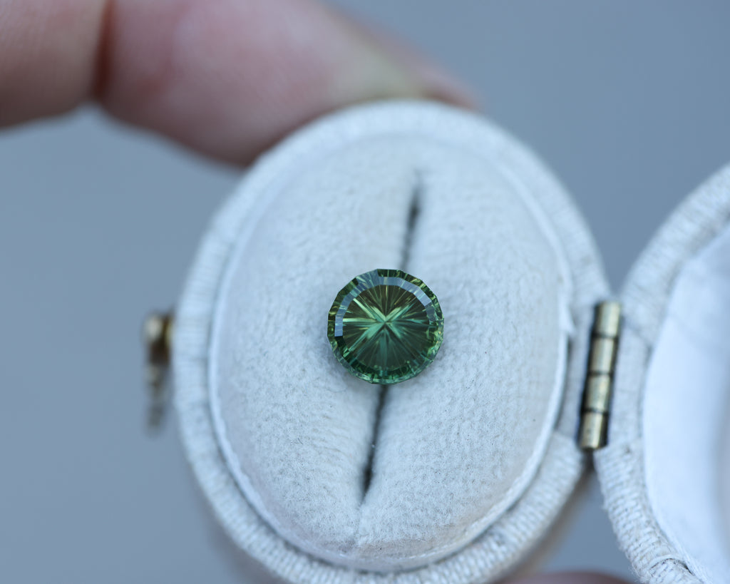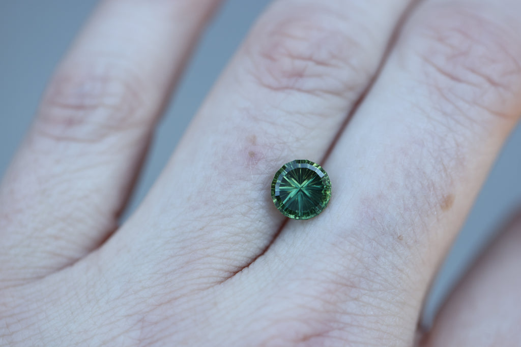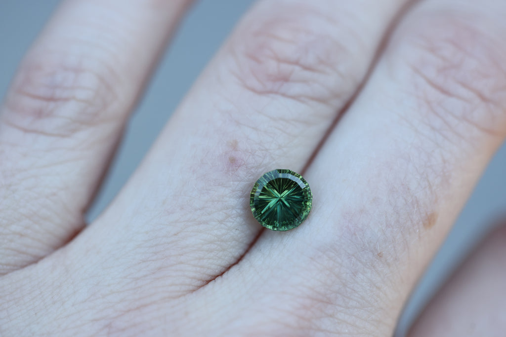 2.07ct round green teal sapphire, Starbrite cut by John Dyer