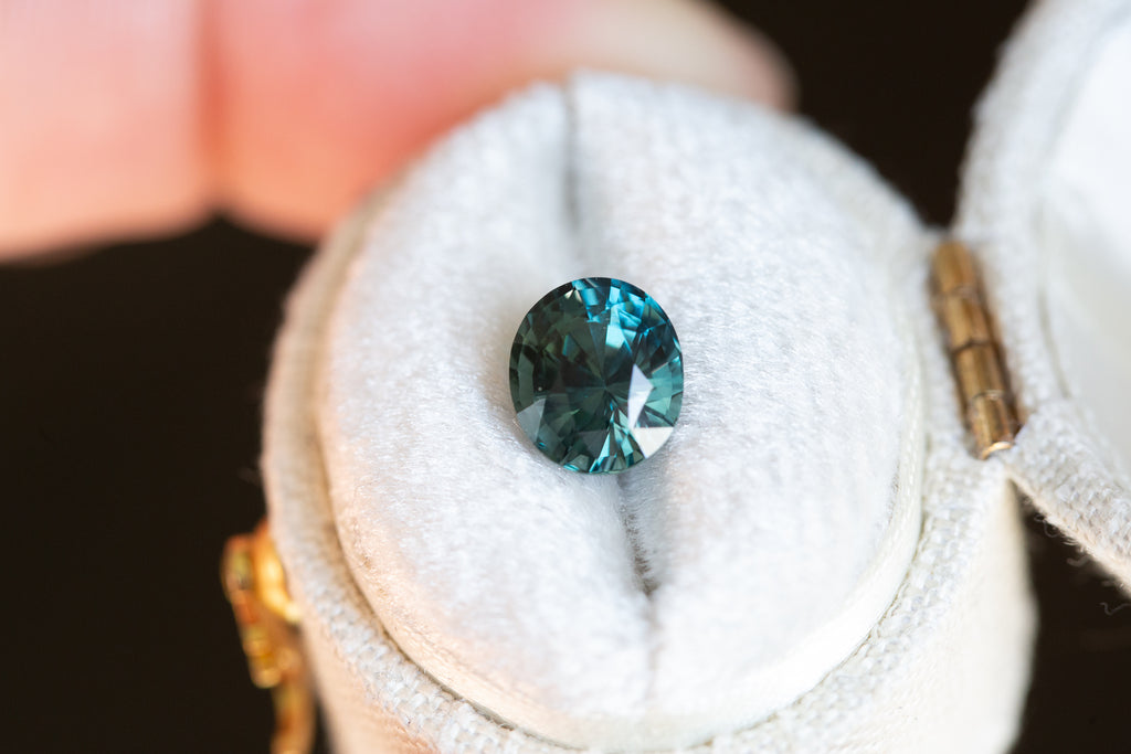 This stunning deep teal blue sapphire has such rich coloring and incredible sparkle - it is an absolute beauty!