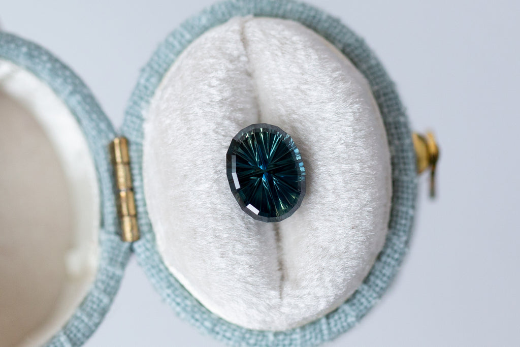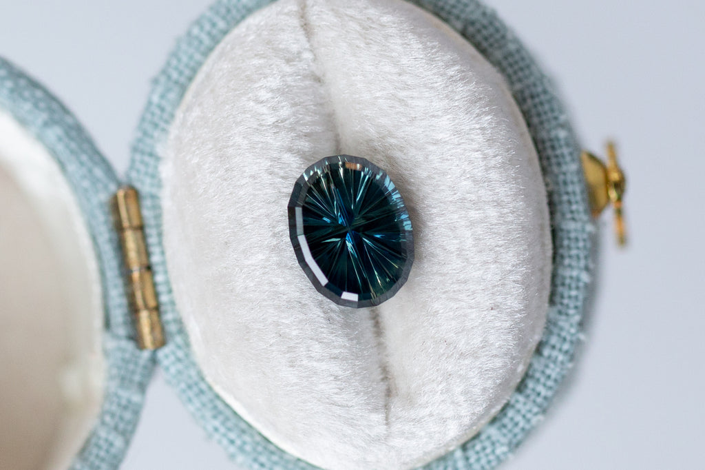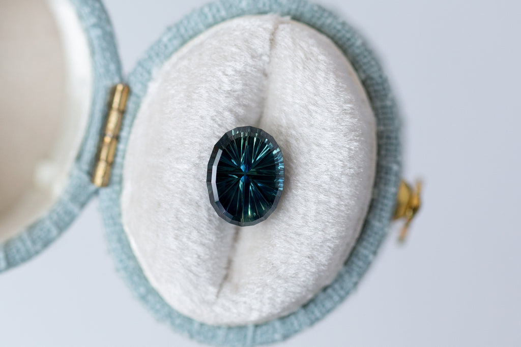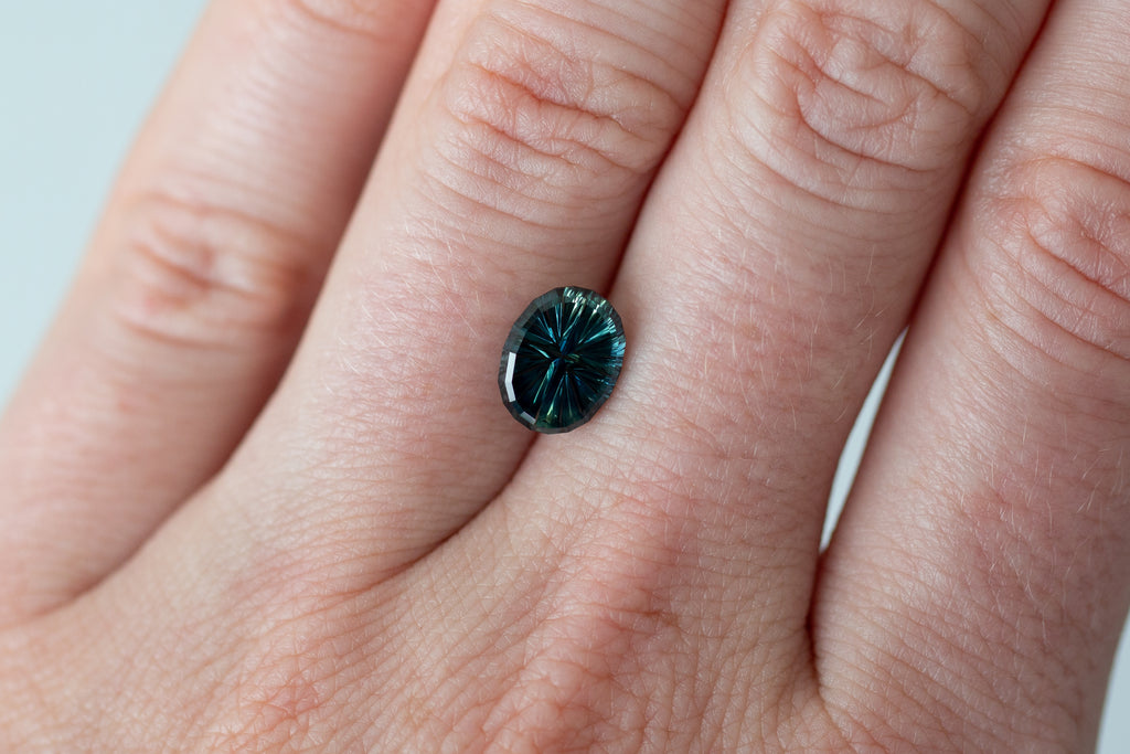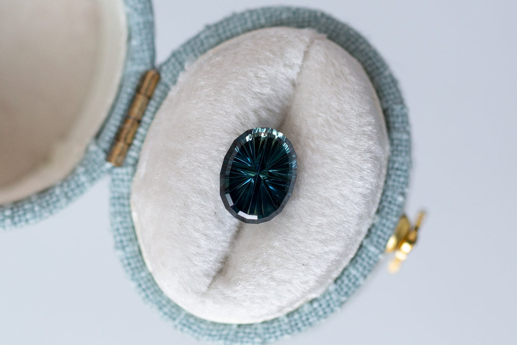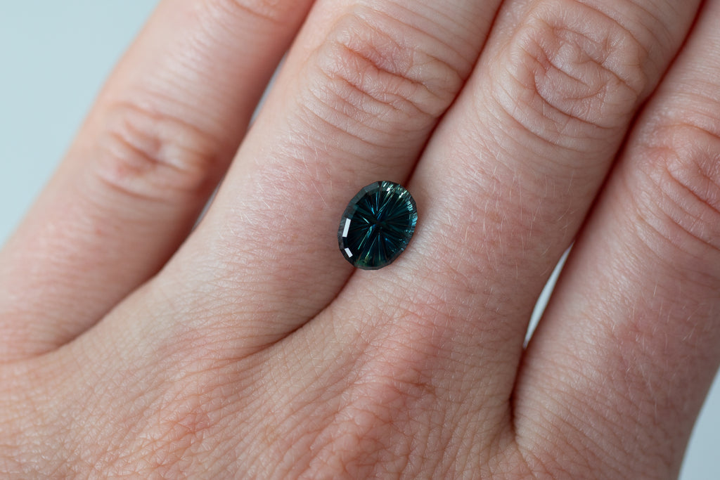 2.12ct Oval Deep Teal Green Sapphire, Starbrite cut by John Dyer