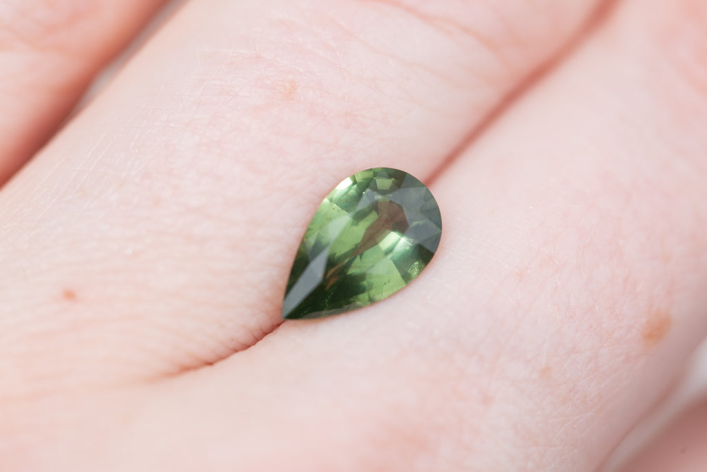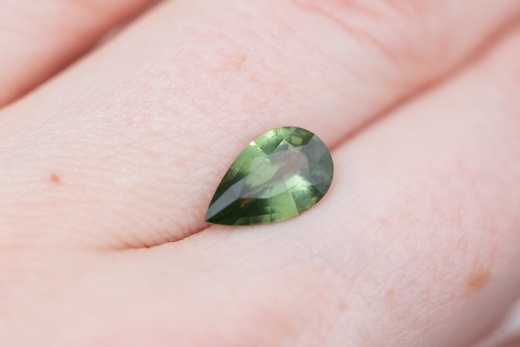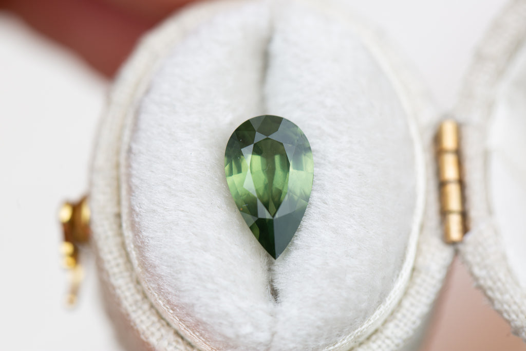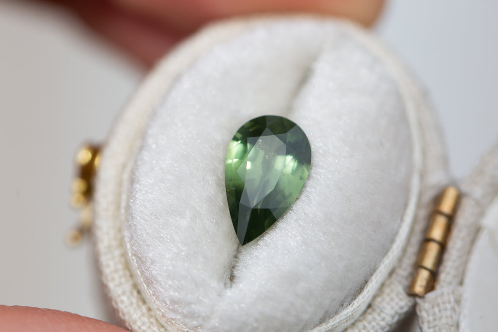 This gorgeous pear green sapphire is slightly opaque and has such a cool murky garden goddess vibe - just an absolute beauty!