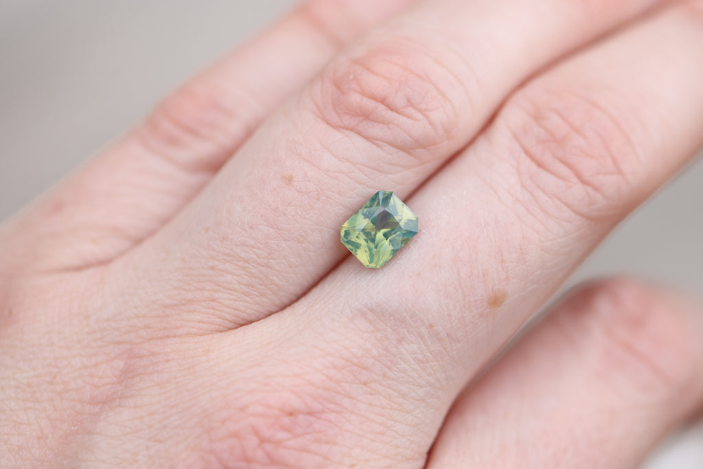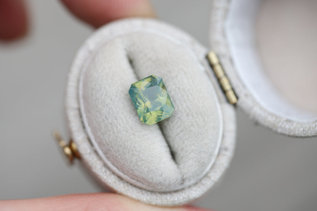 This absolute beauty is the most incredible emerald cut green yellow sapphire with such magical opalescence! Just gorgeous and so special!