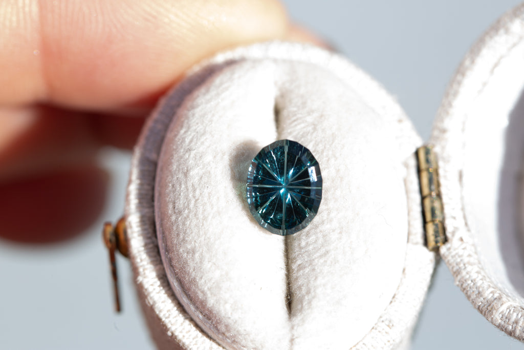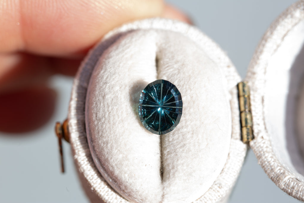 2.15ct oval deep teal sapphire - Starbrite cut by John Dyer