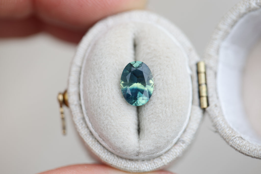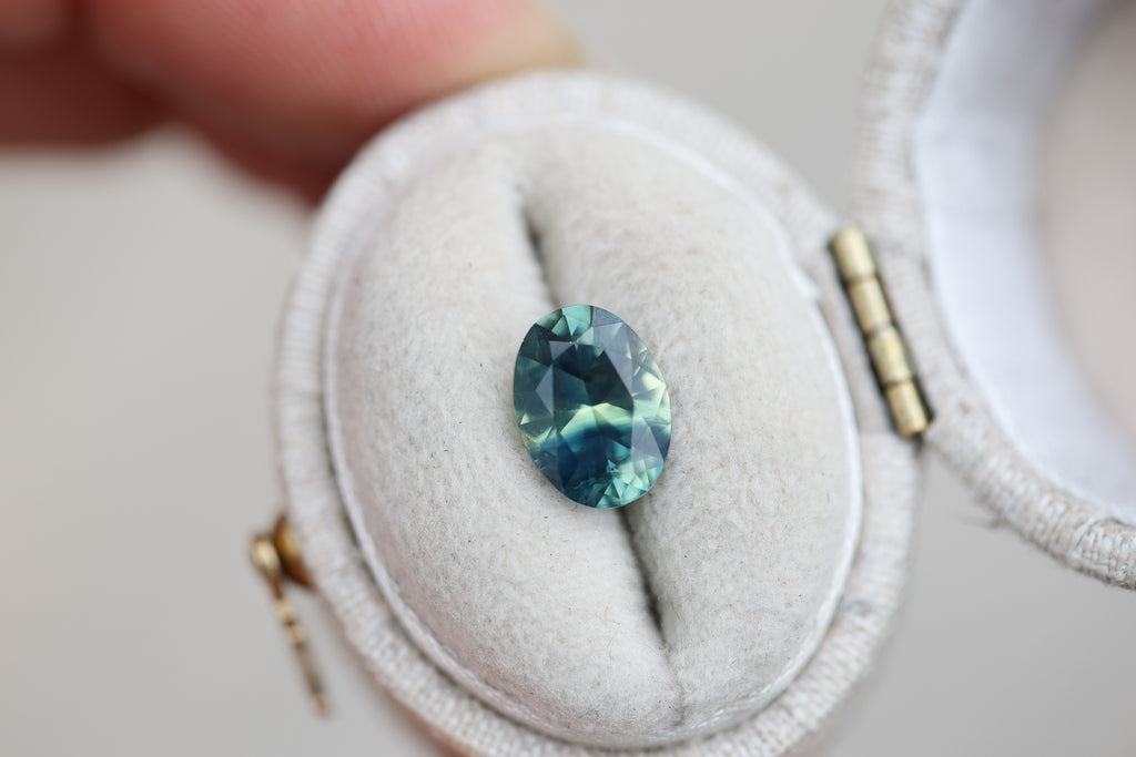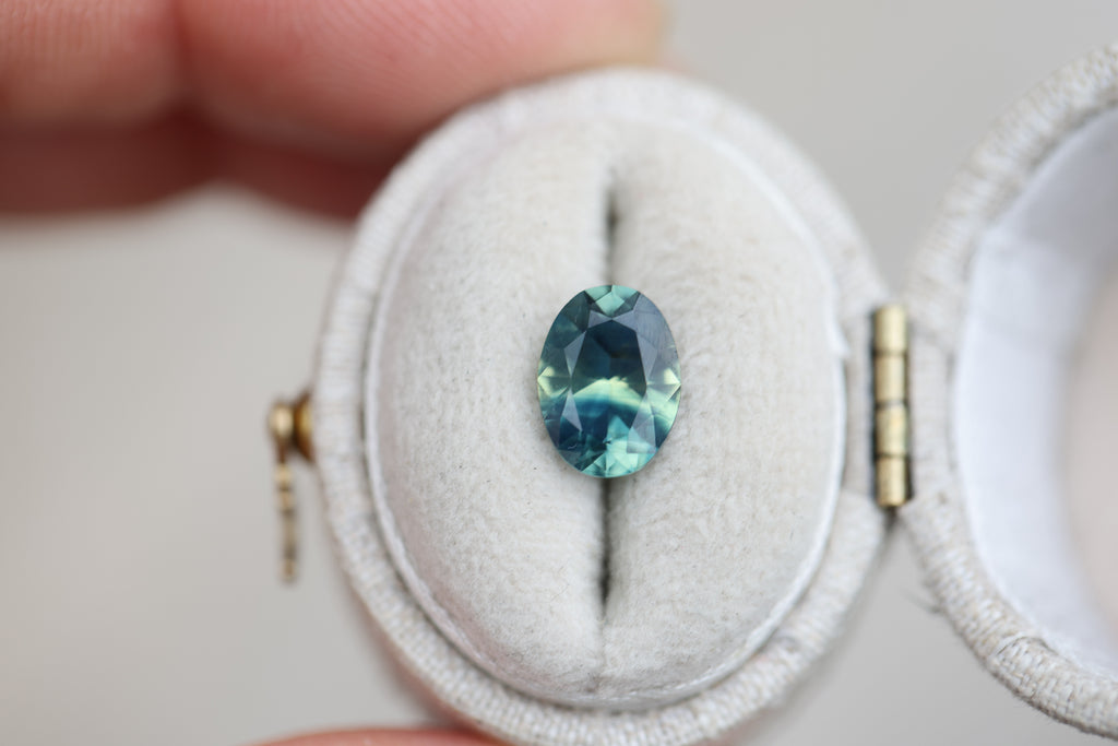 This absolutely gorgeous oval sapphire from Gombe Nigeria has the unique opaqueness that the region is known for along with the most beautiful blue teal coloring! Just such a stunning sapphire!