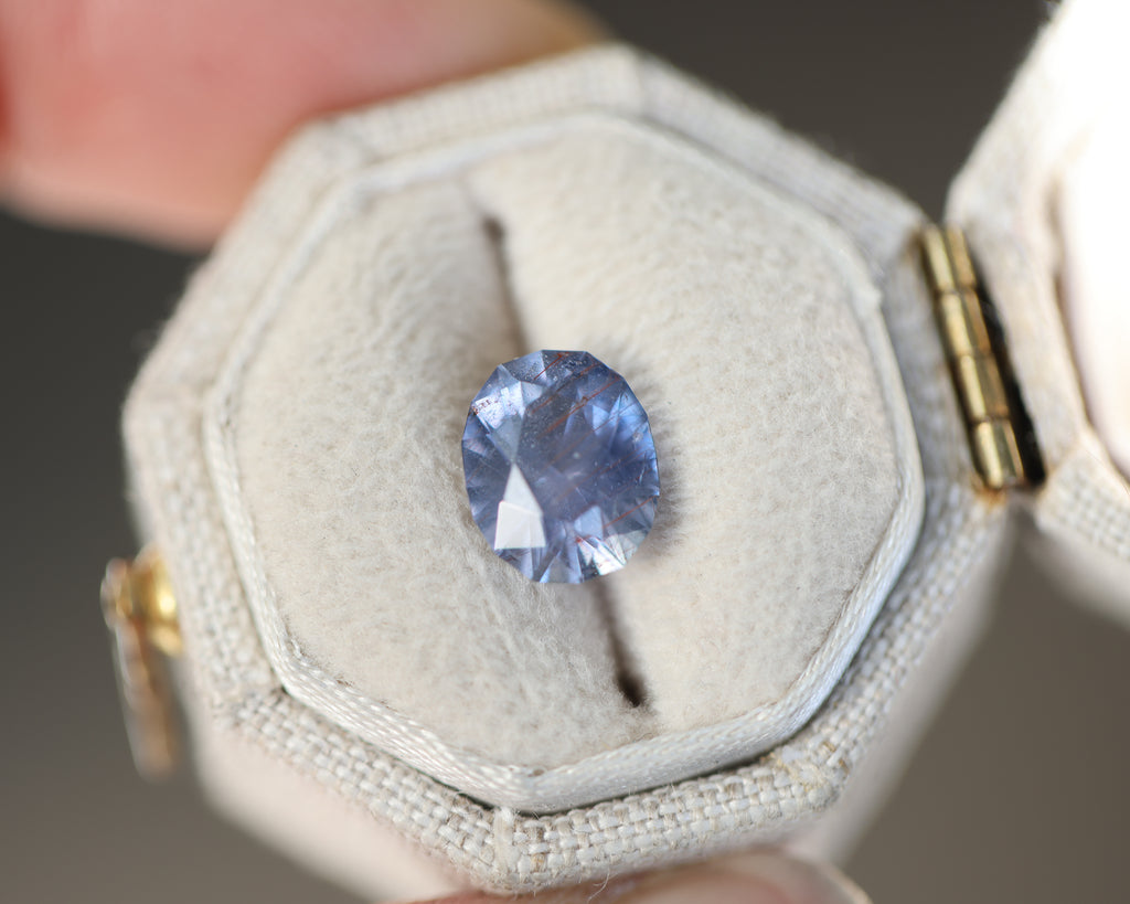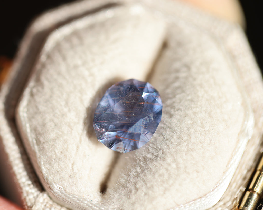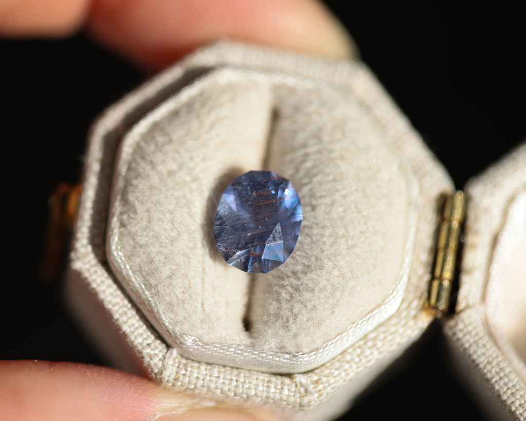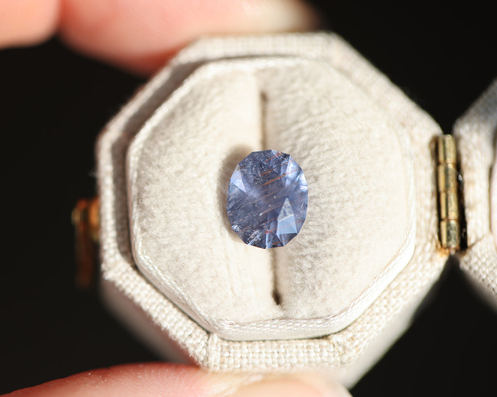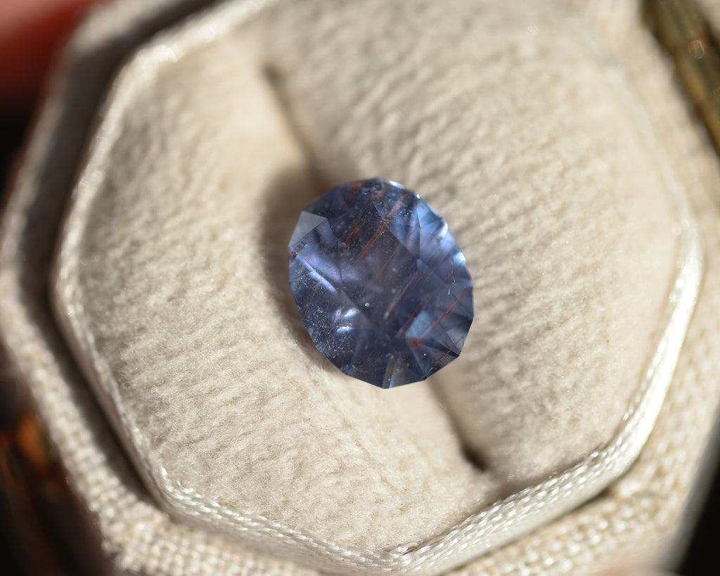 This magical oval Umba sapphire is a purple lavender with unique orange inclusions! It has the loveliest coloring and such incredible faceting! There is something so very special about this stone - like its been scarred by battle but it's beauty remains!