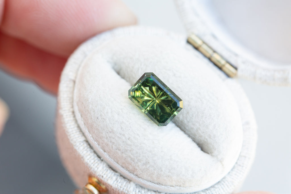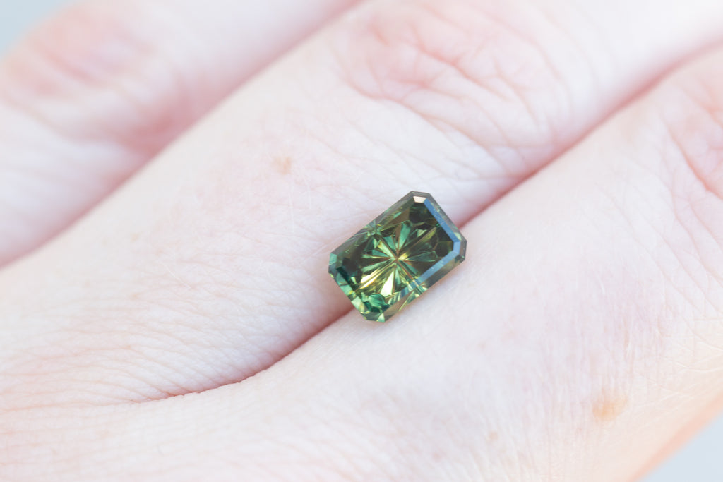 2.42ct rectangle parti green sapphire - Starbrite cut by John Dyer