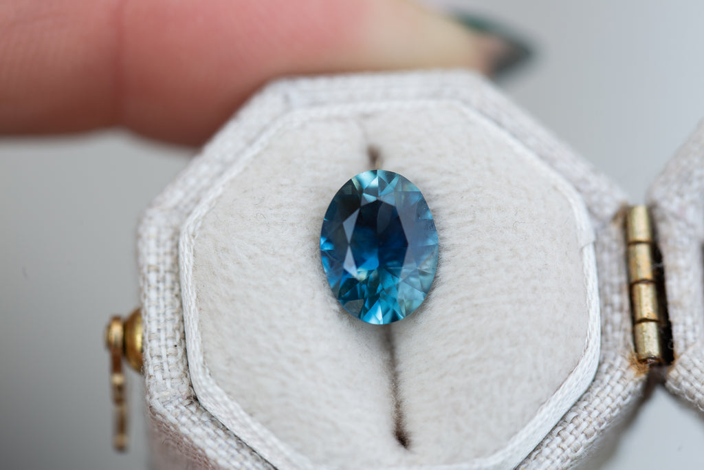 This gorgeous deep blue teal sapphire has incredibly rich coloring and such beautiful sparkle - it is such a stunning stone!