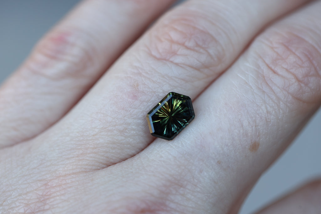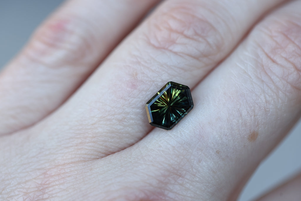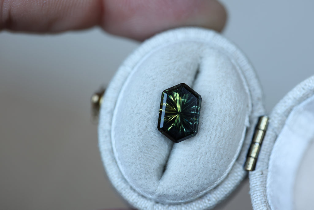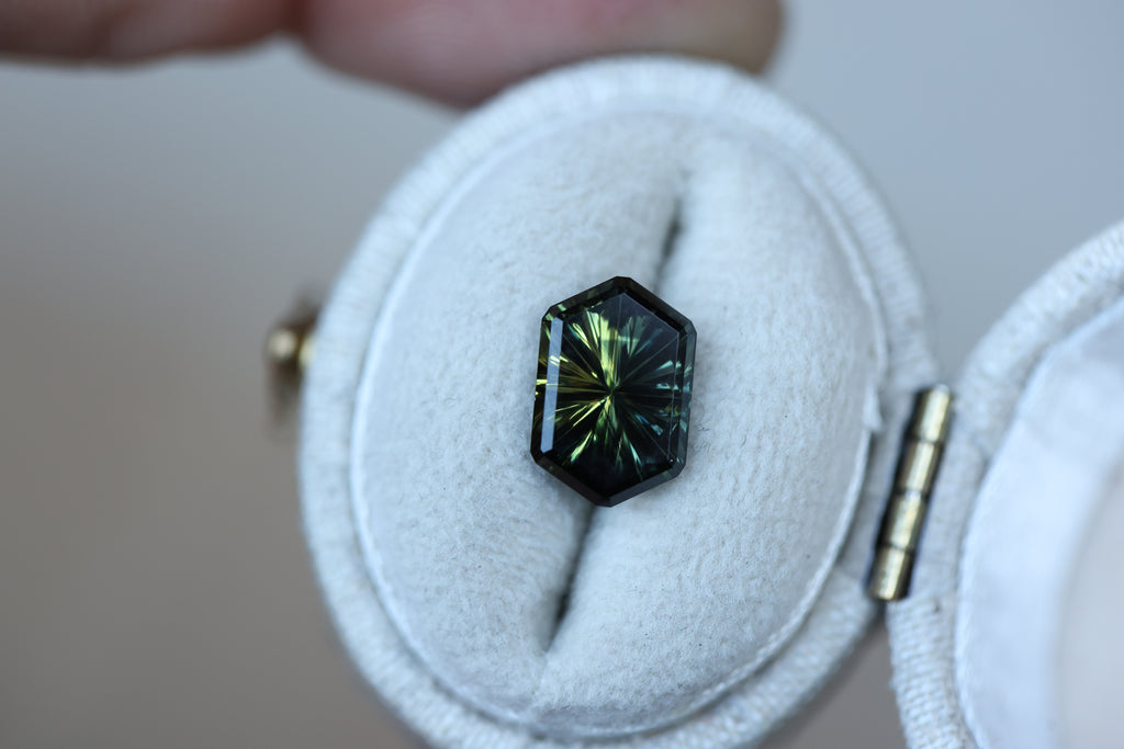 2.52ct elongated hexagon parti sapphire, Starbrite cut by John Dyer
