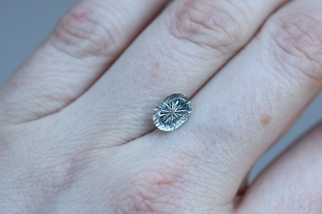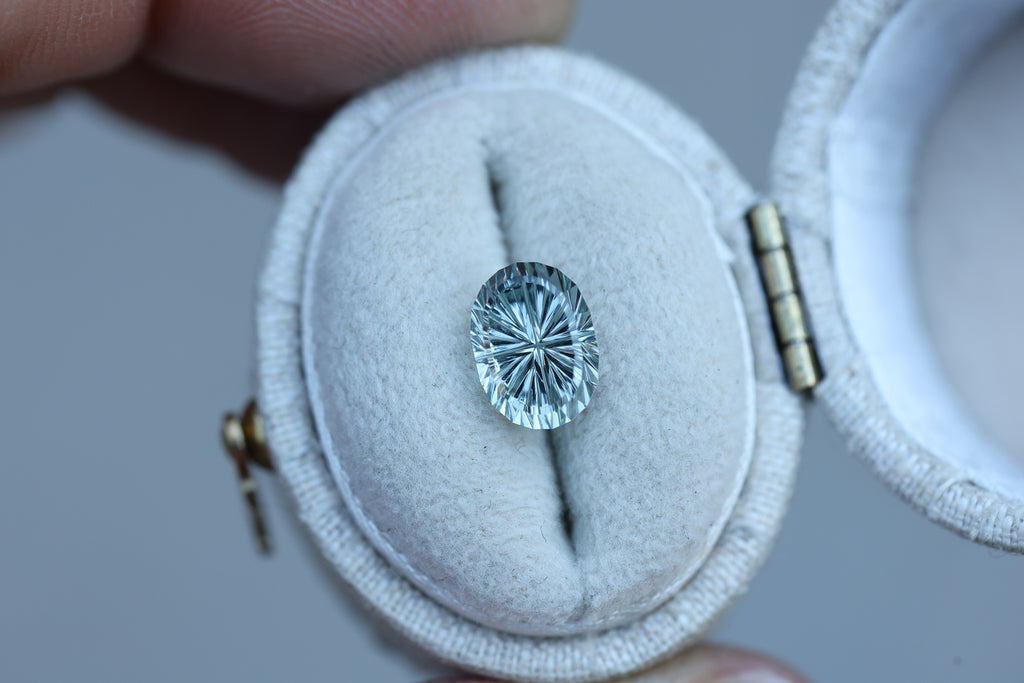 2.54ct oval light blue grey sapphire, Starbrite cut by John Dyer