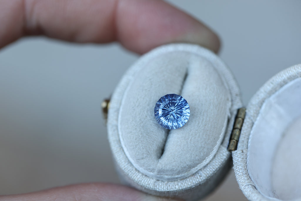 2.8ct round blue sapphire, Starbrite cut by John Dyer