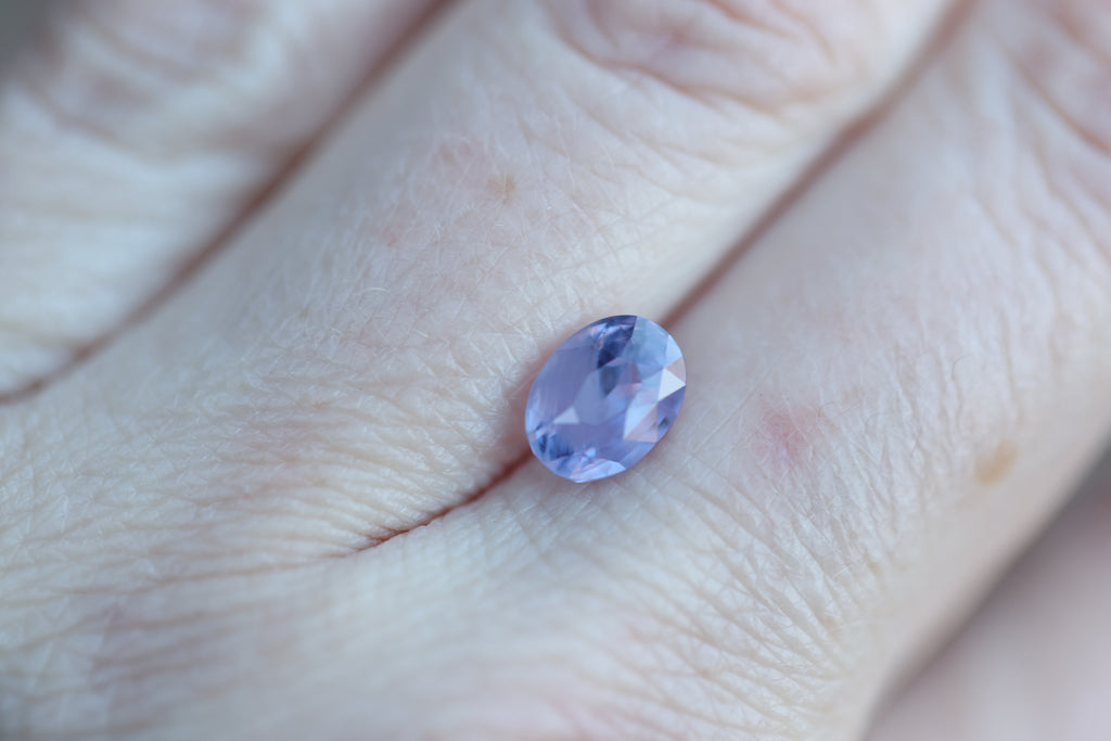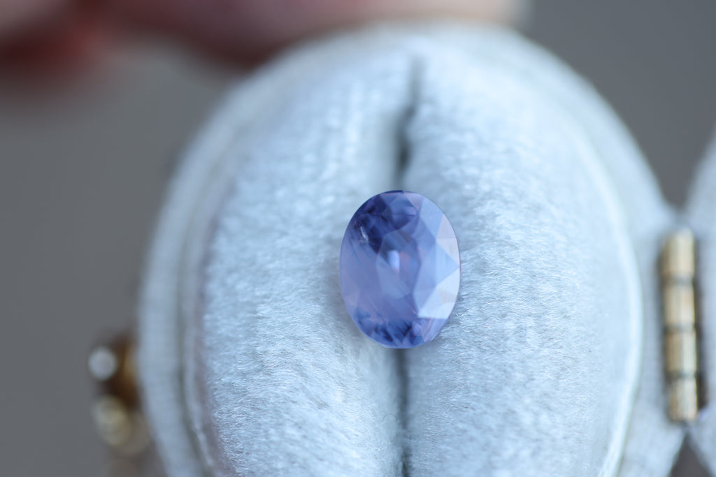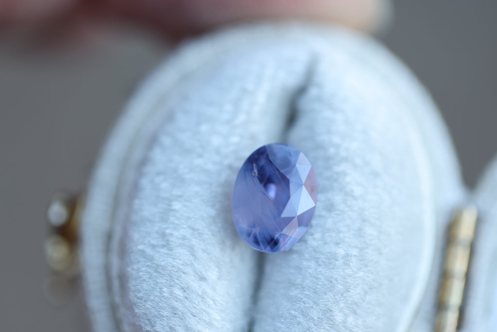 This gorgeous opalescent oval sapphire is a mostly purple gem with a touch of pink! It is such a special stone with just the prettiest ethereal vibe!
