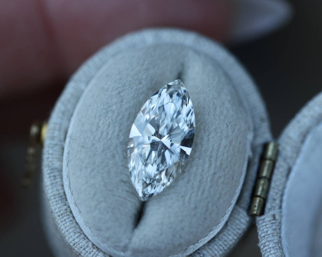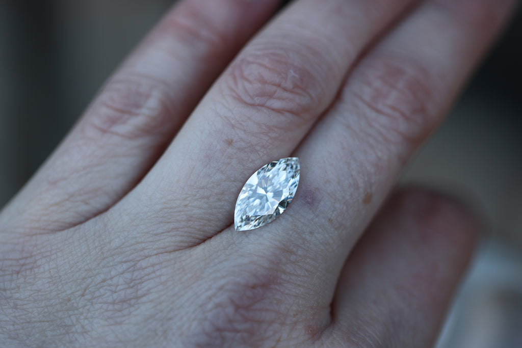 This absolutely incredible marquise lab diamond has the size and sparkle to make the most gorgeous stand out ring!