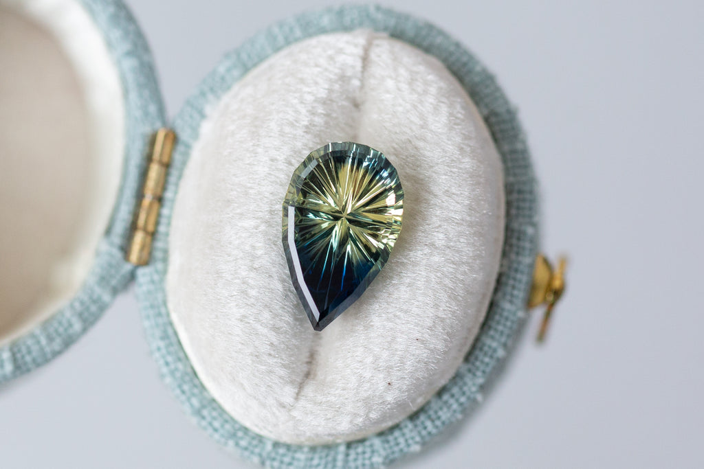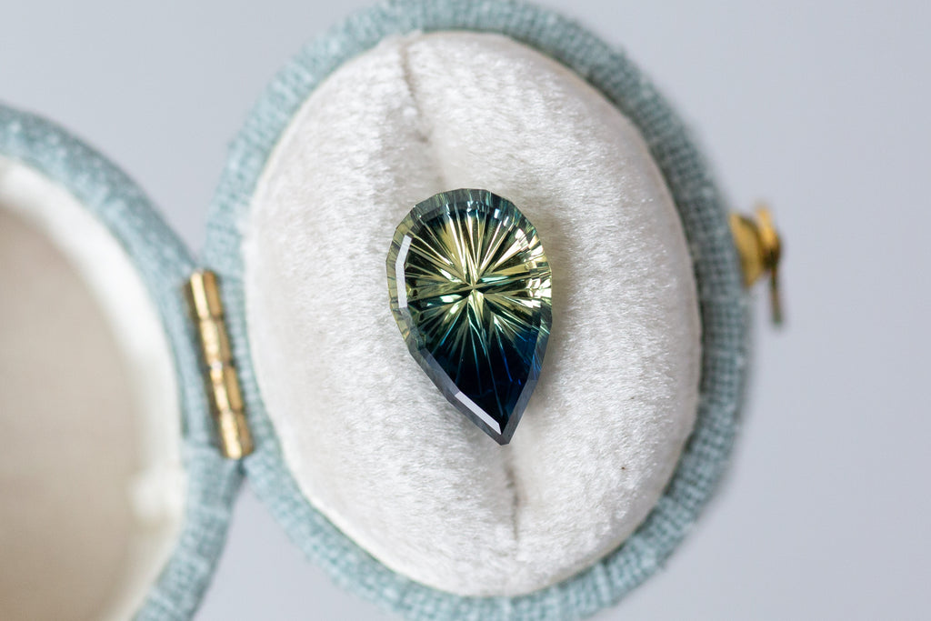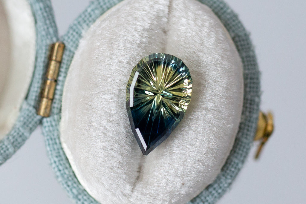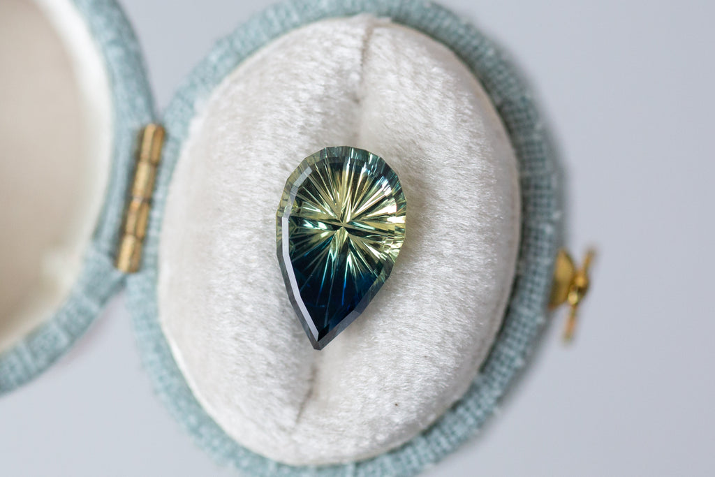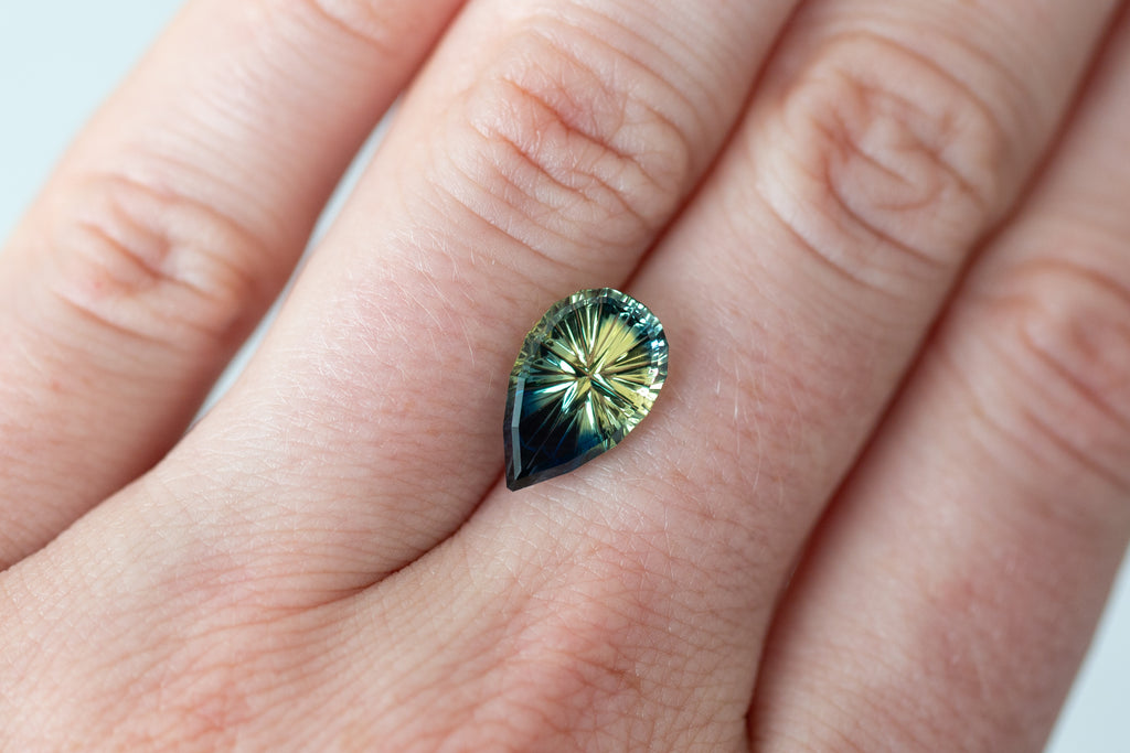 3.84ct Pear Blue and Yellow Parti Sapphire, Starbrite cut by John Dyer