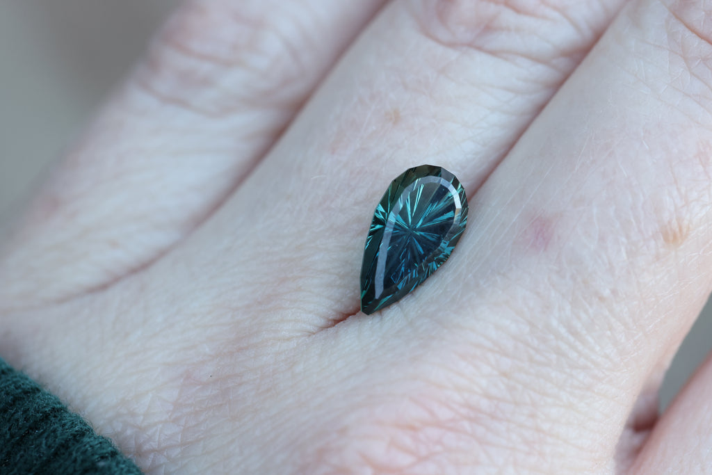 4.16ct pear deep teal blue sapphire - Starbrite cut by John Dyer