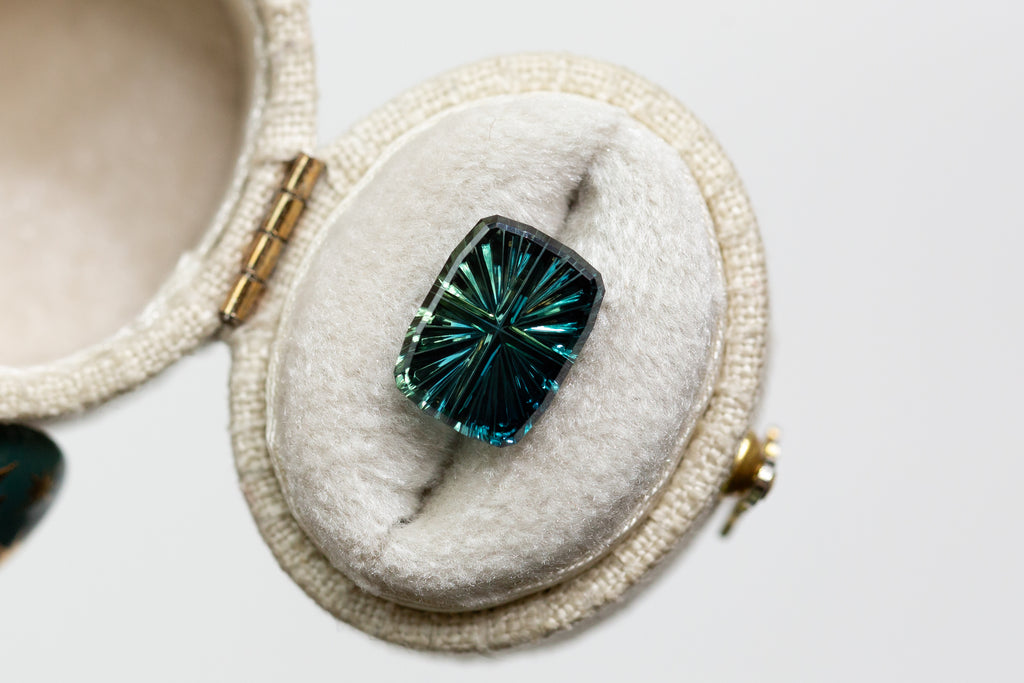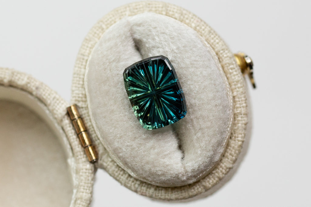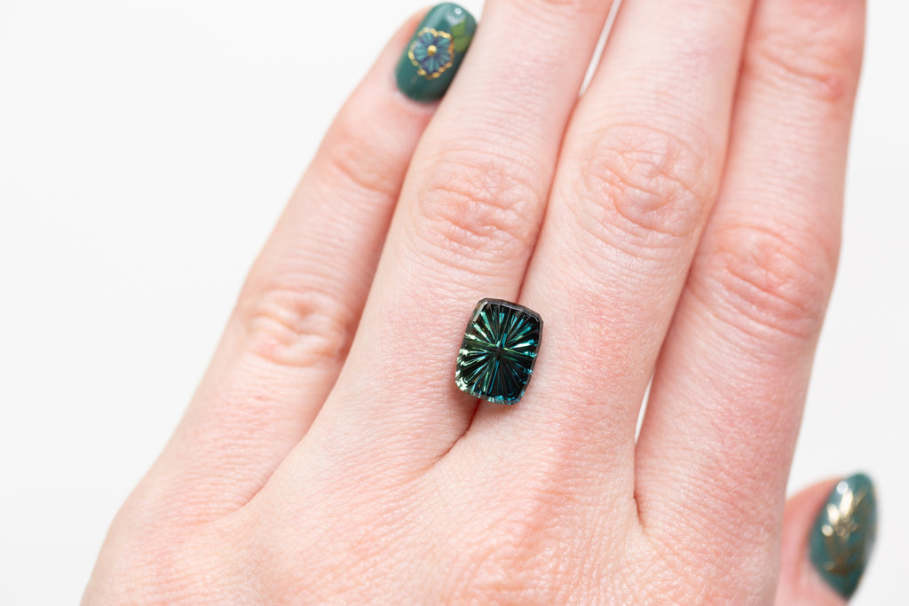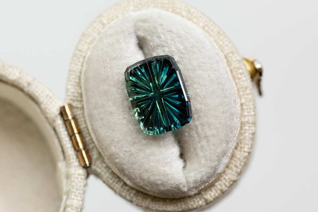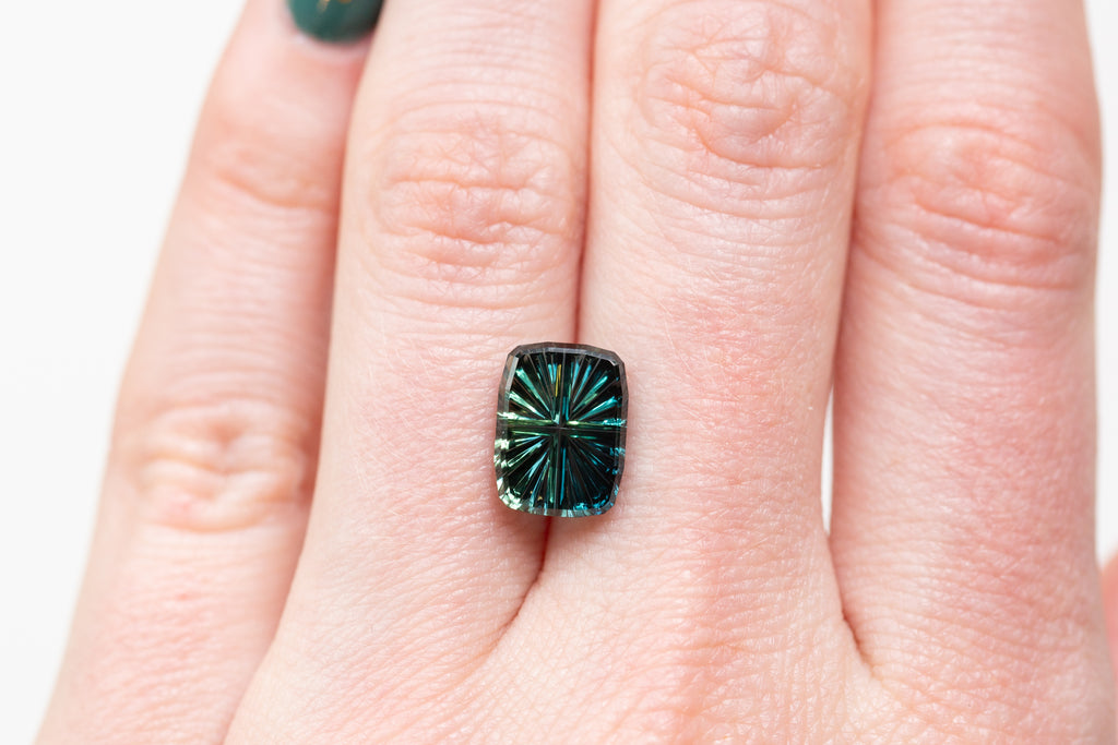 3.65ct Cushion Blue Green Parti Sapphire - Starbrite cut by John Dyer